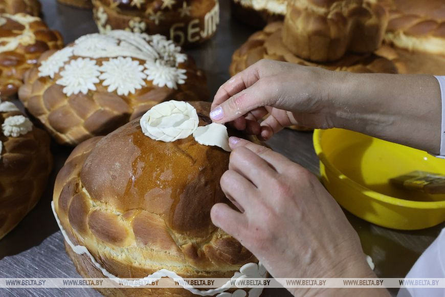На "Дажынках" завод представит еще и выставочный каравай в три яруса. Каждый год мастера предприятия делают новый декор и добавляют в него определенную изюминку.-0-