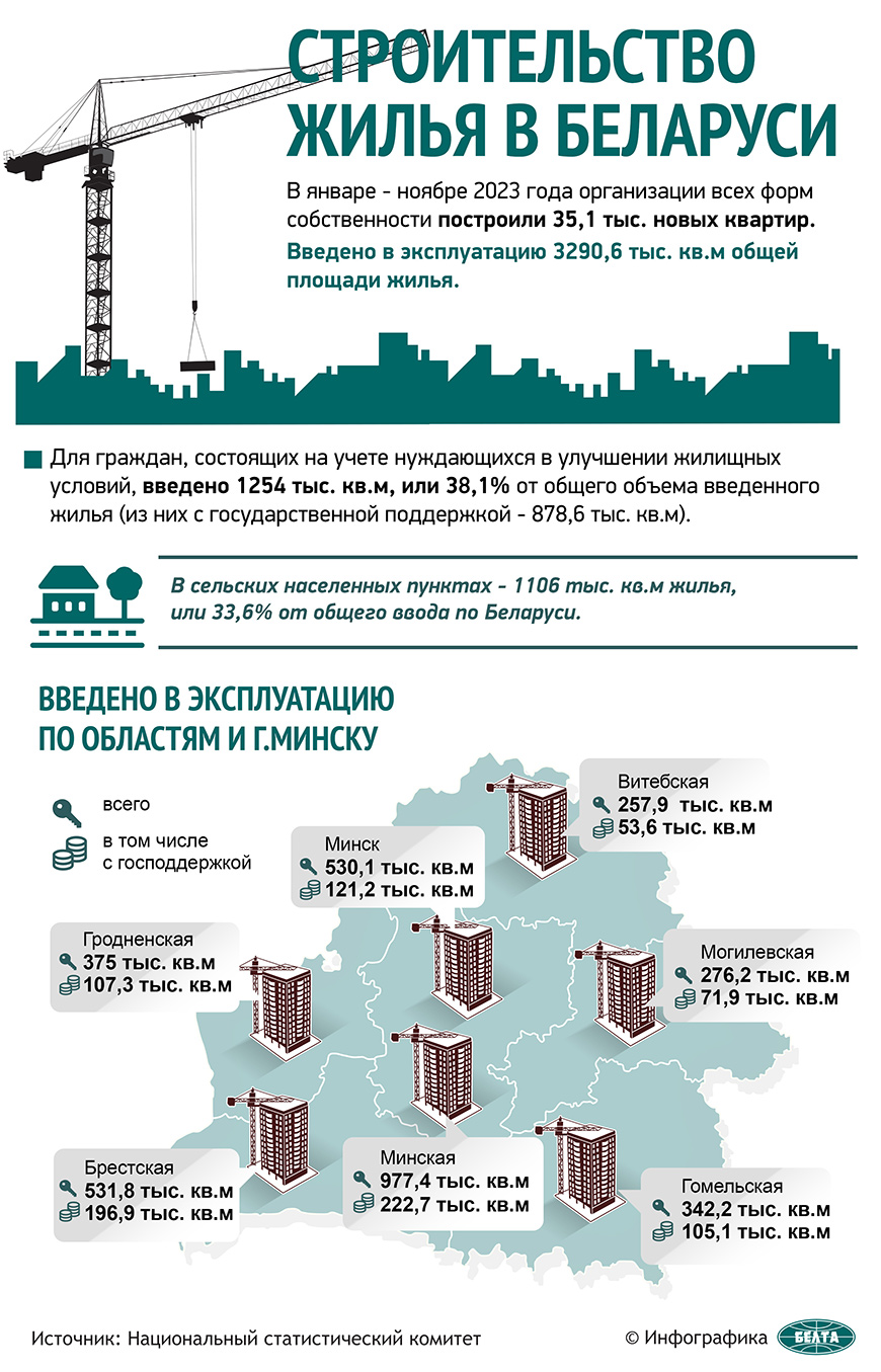 Удельный вес Минска в республиканском объеме ввода жилья составляет 16,1%.-0-