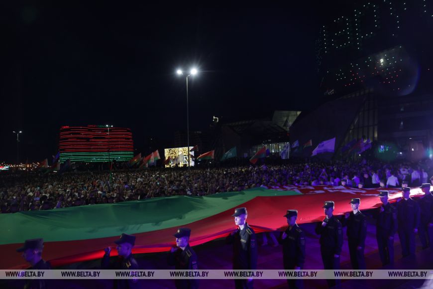 3 июля, Минск /Корр. БЕЛТА/. Молодежный фестиваль современной патриотической песни проходит на площадке, расположенной возле Национальной библиотеки Беларуси. На сцену вышли молодые исполнители, чьи композиции оказались наиболее популярными в интернете, на телевидении, а также участники молодежных музыкальных конкурсов. Завершится мероприятие акцией "Споем гимн вместе" и праздничным фейерверком.-0-