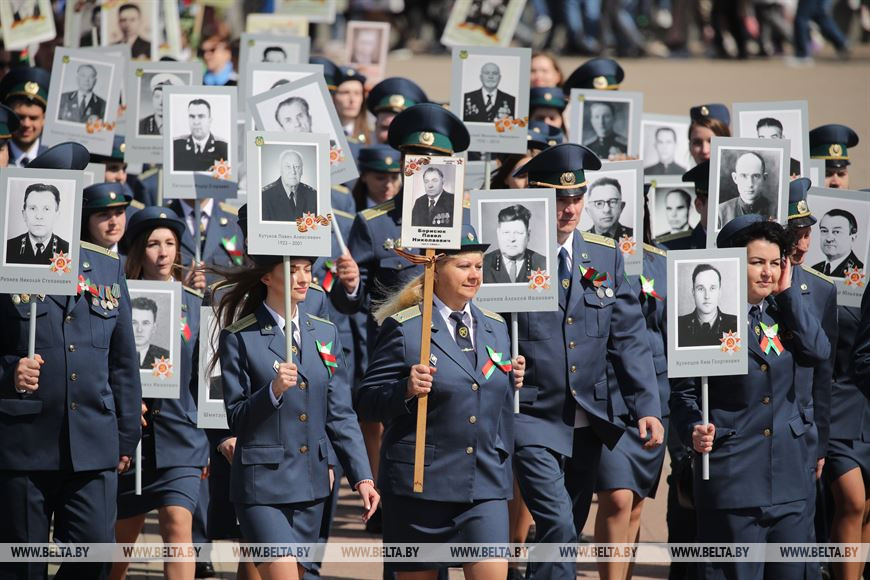Александр Теляков пришел на акцию с портретом деда - рядового, кавалериста Ивана Алексеевича Телякова, участвовавшего в освобождении Бреста. "Так получилось, что всего один корпус 61-й армии вошел в город, а остальная часть пошла южнее. Дед освобождал Брест, а ни разу в нем не был. Теперь уже лет пять он ходит по Бресту в День Победы вместе со мной. Это связь поколений. В этом только и смысл всего - что мы помним. Это сакральная вещь", - отметил брестчанин.