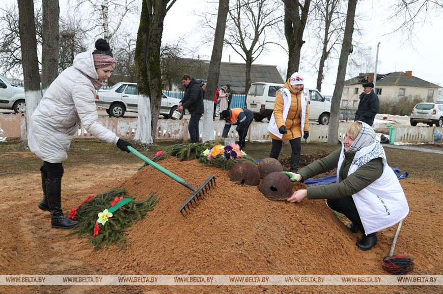 "Участниками акции стали члены Белорусского республиканского союза молодежи, представители "Белой Руси", педагоги и школьники, жители деревни, которые поддержали наше предложение помочь в уборке, - рассказала Тамара Семенова. - В деревне живет ветеран, который слышал истории очевидцев тех страшных событий 17 июня 1942 года. Тогда немецко-фашистские захватчики сожгли деревню и сотни мирных жителей. Кроме того, здесь есть воинское захоронение, где покоятся красноармейцы, защищавшие нашу Родину в годы войны".