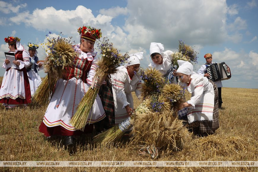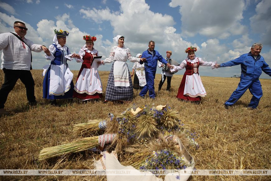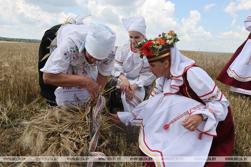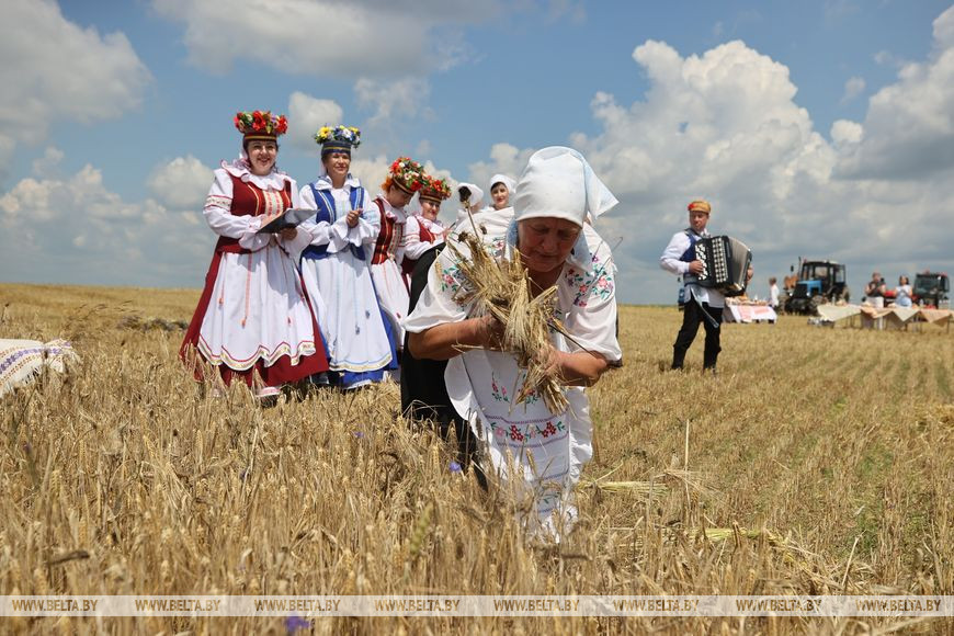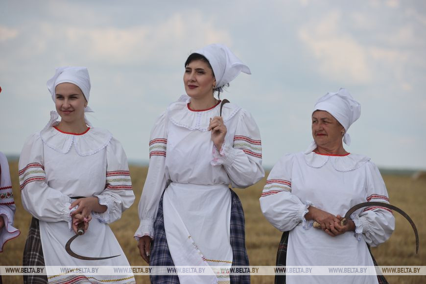 30 июня, Слонимский район /Корр. БЕЛТА/. Придерживаясь традиций многих поколений белорусов, в Слонимском районе приступили к жатве с обряда "Зажинки", передает корреспондент БЕЛТА.
