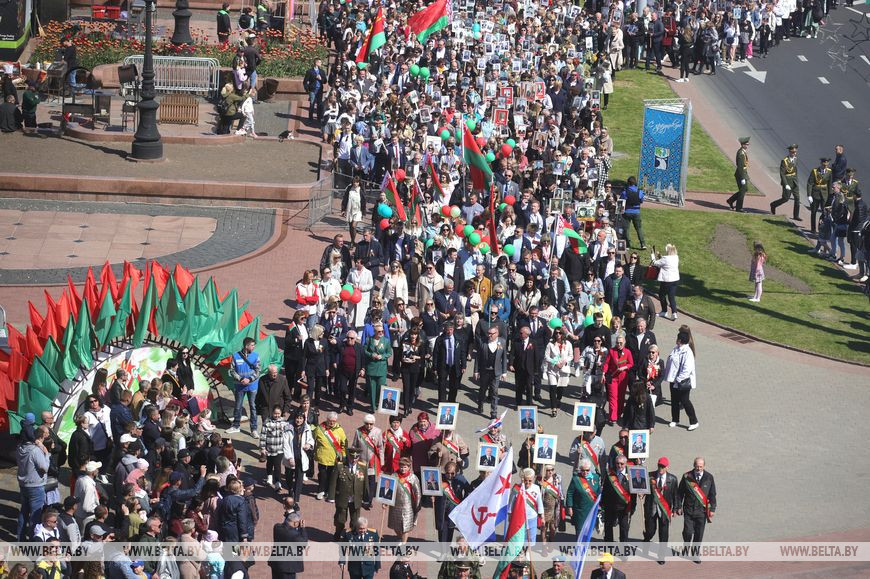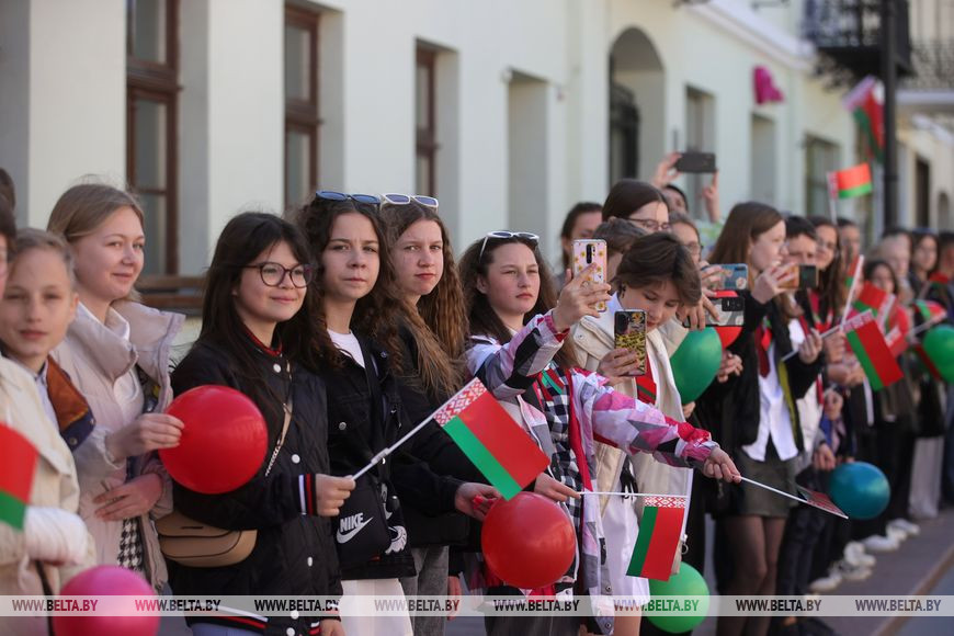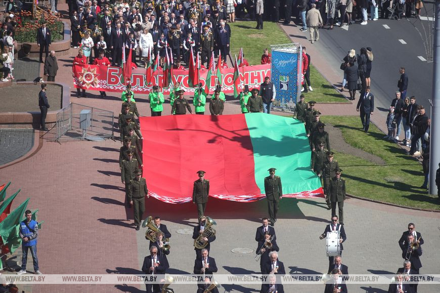9 мая, Гродно /Корр. БЕЛТА/. В Гродно прошло шествие поколений "Нам этот мир завещано беречь", объединившее сотни жителей, передает корреспондент БЕЛТА.
