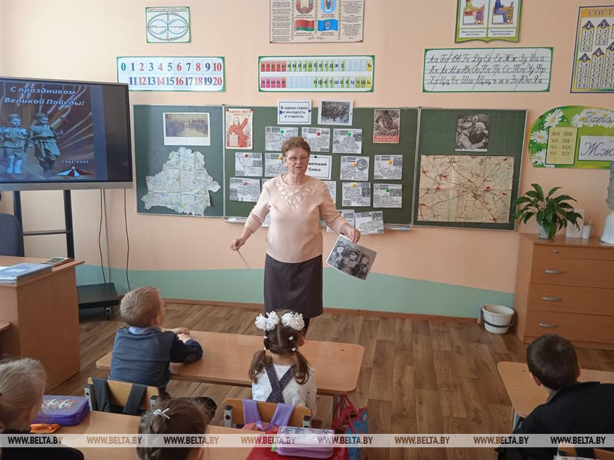 Первоклассников ознакомили с ролью Советского Союза, а также БССР, входившей на тот момент в его состав, в освобождении народов от коричневой чумы. Ставилась задача объяснить, что наши предки воевали за Родину, за светлое будущее, защищали право славян на жизнь.