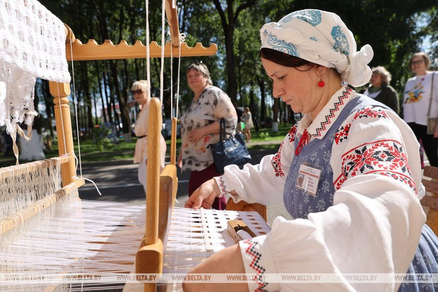 Представительницы золотого возраста из Дубровно во главе с председателем районной ветеранской организации Верой Чаплевой приехали командой, чтобы подсмотреть у мастеров на подворьях новые идеи для творчества, зарядиться атмосферой праздника и познакомиться с новым для некоторых из них городом северного региона. "Мы, ветераны, самый активный народ, потому что у нас много свободного времени, поэтому приехали сюда скорее даже на других посмотреть. День письменности - это праздник, который объединяет не только нас как белорусов, а вообще всех, кто любит и уважает печатное слово. Аз, буки и веди еще никого ничему плохому не научили, так что можно сказать, что это наше доброе и светлое начало. И то, что незадолго до Дня народного единства сюда прибыли делегации со всей республики, доказывает, что наш народ сплоченный и дружный. Все корни - отсюда, из нашей письменности, которая нас всех объединяет", - подчеркнула руководитель ветеранской организации.