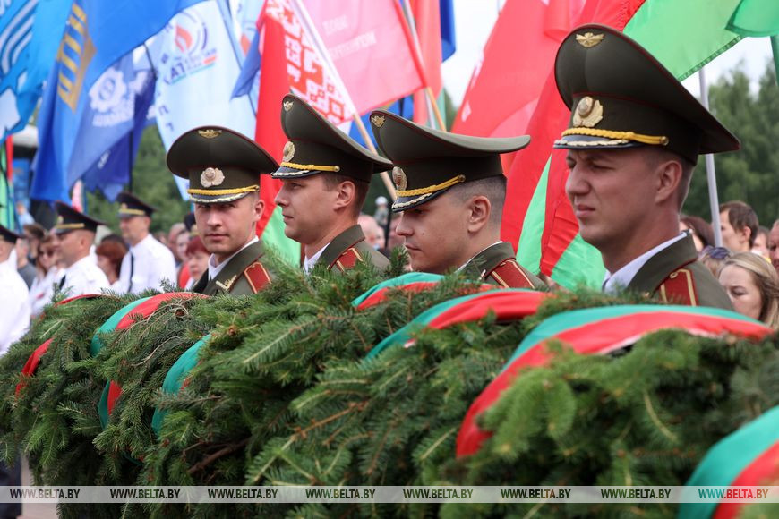 "День Независимости - символ единства нашего общества, преемственности поколений и уважения традиций. Этот праздник воплощает в себе мужество и героическое прошлое нашего народа. Независимость Беларуси основана на заслугах поколения победителей. В июне 1941 года на нашу землю двинулась безжалостная армада, несущая горе и смерть, но встретила сильный отпор. На защиту Отечества поднялась вся страна, - сказал Леонид Заяц. - Сегодня мы вспоминаем подвиг защитников нашего Могилева. 80 лет назад на этом святом для каждого из нас месте - Буйничском поле - начала рождаться Великая Победа. Оборона города длилась 23 дня. Героическая оборона Днепровского рубежа во многом стала причиной срыва гитлеровского плана молниеносной войны".