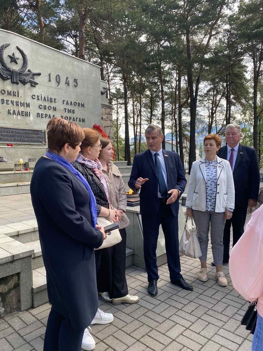 У Вечного огня депутаты встретились со студентами, будущими педагогами из столичных университетов. Состоялся разговор о войне и современности, о мечтах и реальной жизни студенчества и молодых специалистов. Объединяющей всех участников встречи была мысль о том, что ужасы войны не должны повториться.