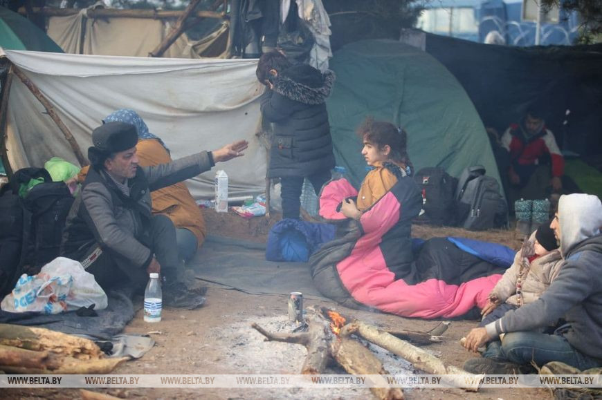 Большая группа беженцев, направлявшихся к белорусско-польской границе, была замечена неподалеку от пункта пропуска "Брузги" 8 ноября. Попасть в Польшу у иностранцев, большинство из которых курды из Ирака, не получилось. Они организовали лагерь у самой линии польской границы.