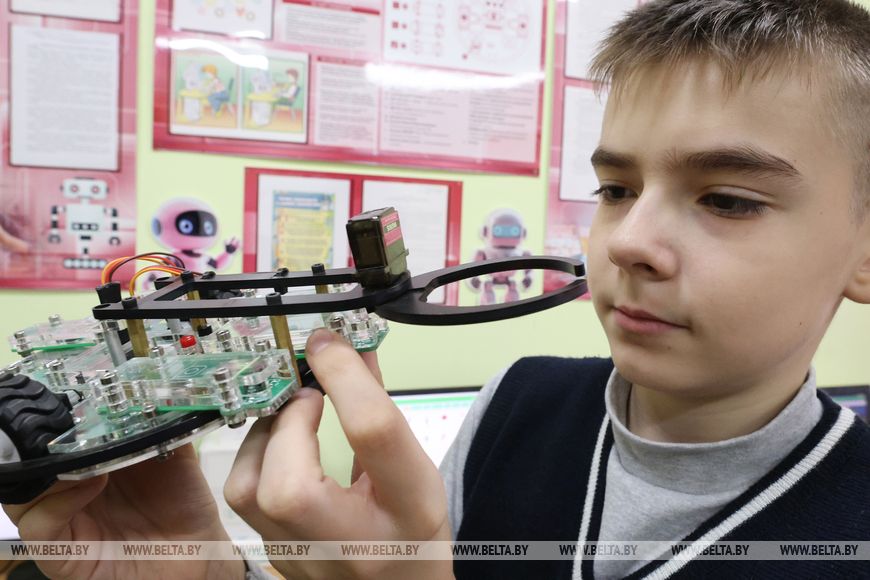 Среди его воспитанников есть юные таланты, побывавшие на международных состязаниях по робототехнике. Например, Егор Климанов, который около четырех лет увлекается программированием. Он участвовал в конкурсе научно-технического творчества учащихся Союзного государства "Таланты XXI века" и хотя не взял призового места, но зато увидел уровень подготовки ребят из Беларуси и России.