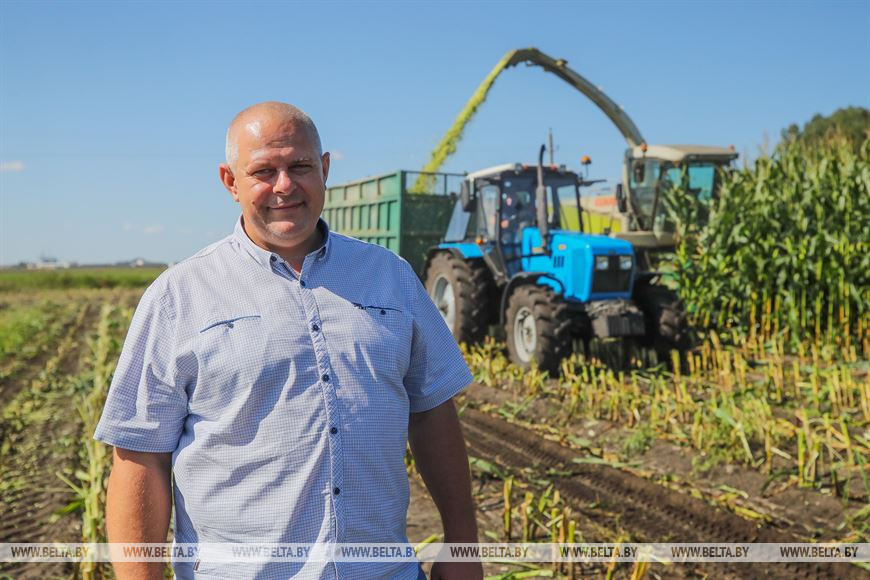 "Череззерницы нет, то есть опыление прошло нормально, полный початок. Основной урожай кукурузы, не менее 40%, зависит от початка. Если хороший початок, то и урожай больше. Самое важное в этом корме, вся энергия заключается в зерне", - отмечает Вадим Головчик. "Кукуруза в этом году однозначно лучше. Много полей, где за 300 центнеров урожайность. В первую очередь убираем участки, которые необходимо освободить под озимый сев", - поясняет директор СУП.