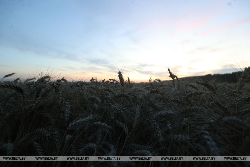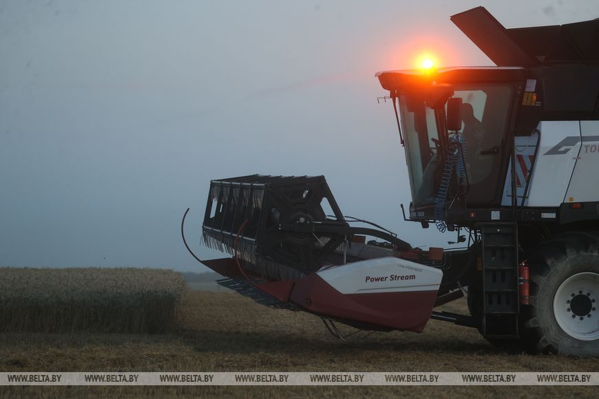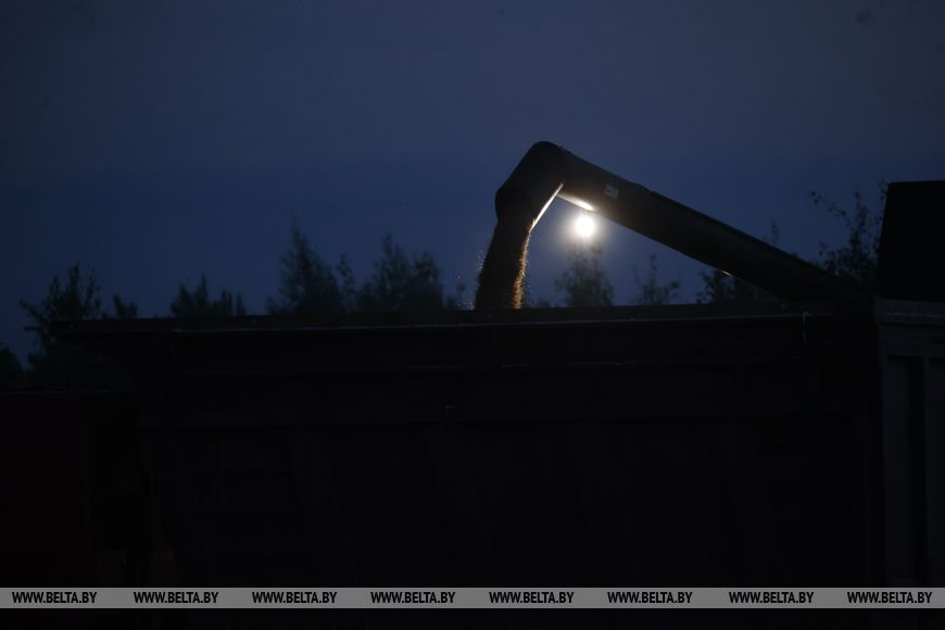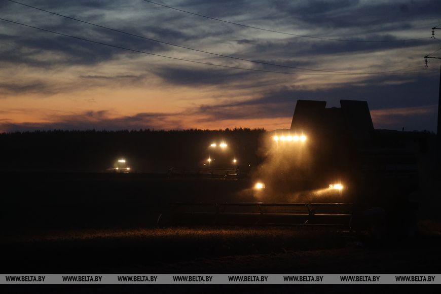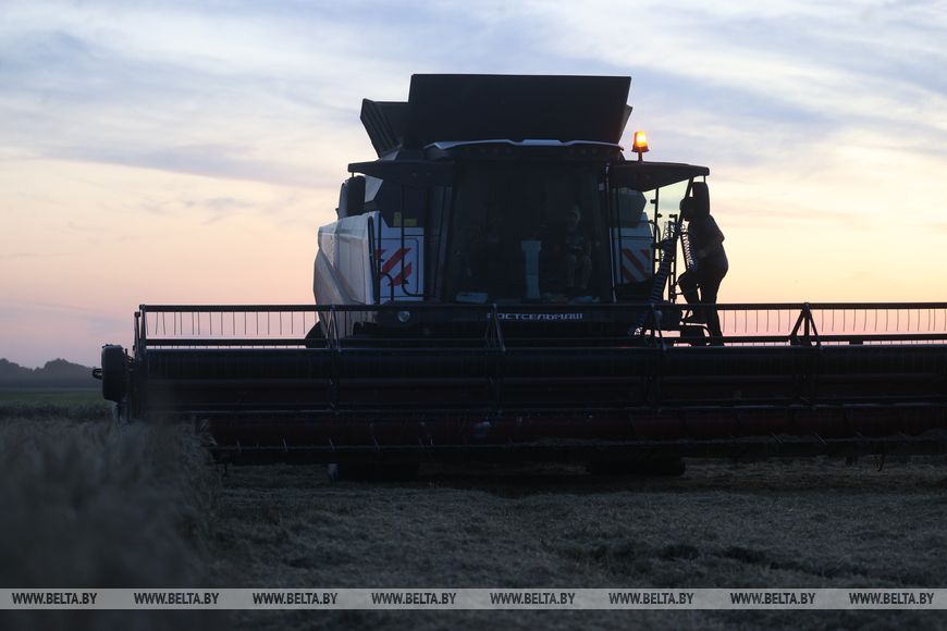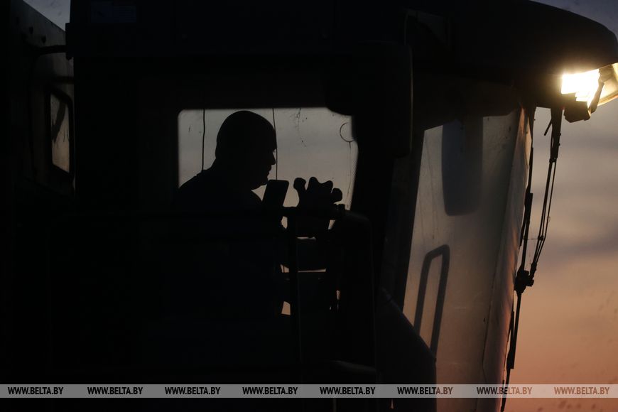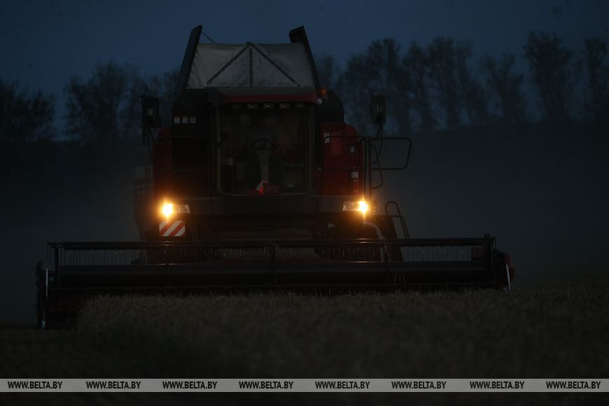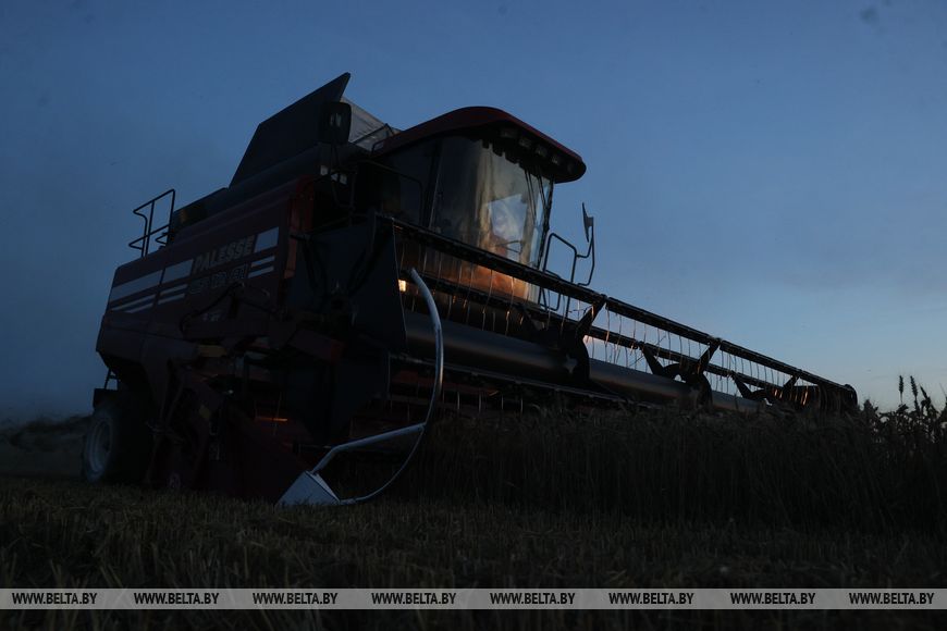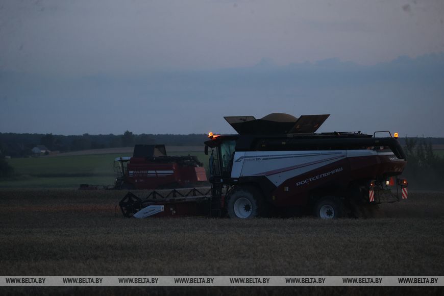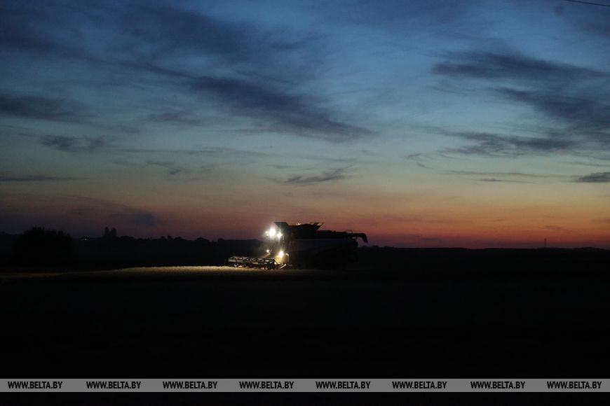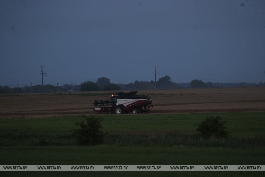 22 июля, Брест /Корр. БЕЛТА/. Механизаторы ОАО "Остромечево" Брестского района ведут уборку зерновых до позднего вечера.-0-