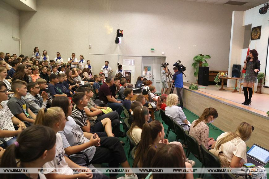 9 августа, Могилевский район /Корр. БЕЛТА/. Общение с детьми во время акции "Шаг к успеху" позволяет вдохновить их на творчество и созидание. Такое мнение журналистам высказала известная белорусская исполнительница Ирина Дорофеева во время выступления перед юными воспитанниками санатория "Дубровенка" Могилевского района, которое стало частью республиканского информационно-образовательного проекта, передает БЕЛТА.