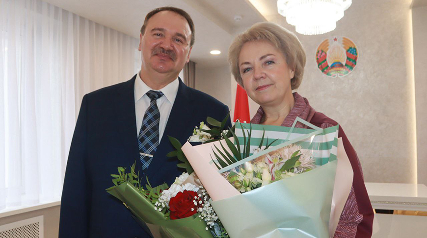 В рамках торжественного открытия отдела ЗАГСа состоялось поздравление супружеской пары с коралловой свадьбой. Уже 35 лет вместе Сушковы Андрей Валерьевич и Светлана Георгиевна. Для них снова прозвучал вальс Мендельсона.-0-