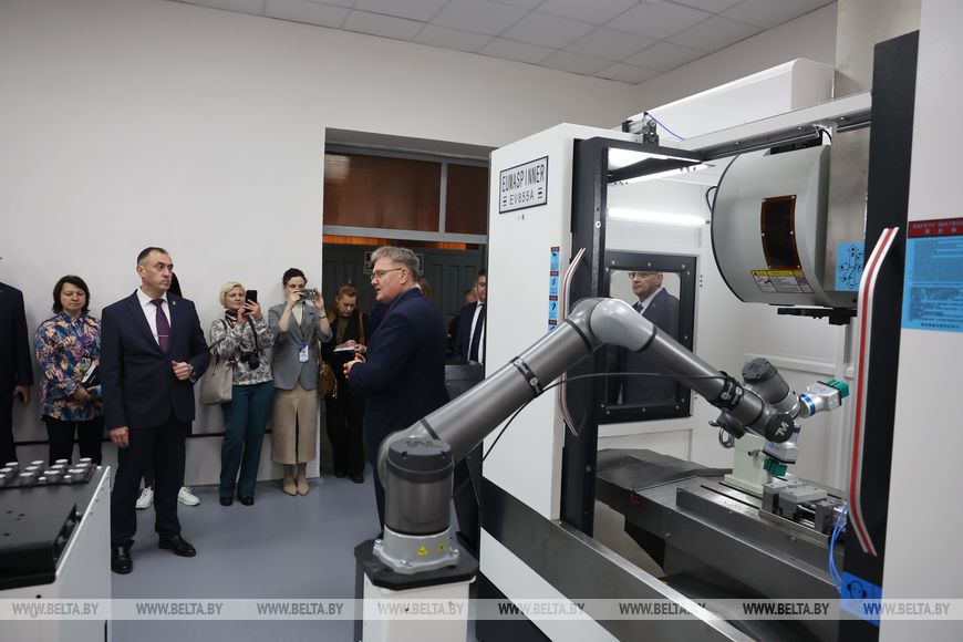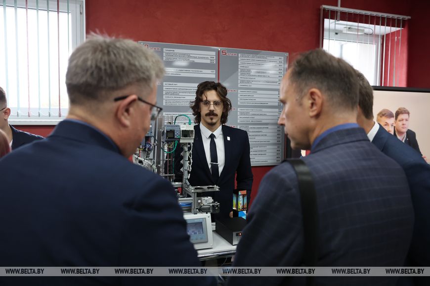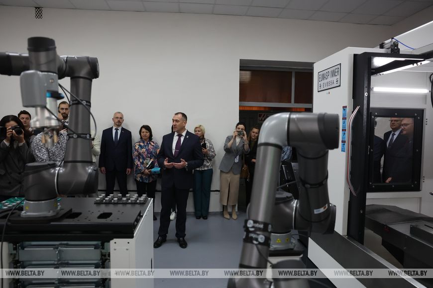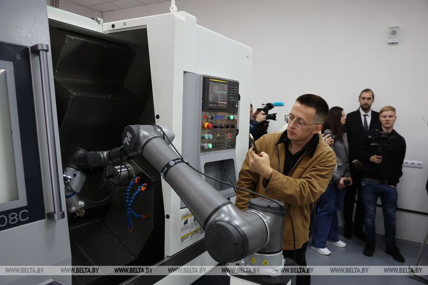 Центр находится на базе Белорусско-Российского университета. На торжественном открытии гости осмотрели помещения, ознакомились с оборудованием и посетили выставку научно-технических разработок вуза. Магистрант Белорусско-Российского университета Станислав Бочкарев продемонстрировал работу автоматизированного комплекса. "Эту установку собрали, когда я был студентом. Вместе с ней мы выиграли награду на российском инженерном конкурсе. Это буквально то, как мы представляем будущее, то есть "Индустрия 4.0", а именно безлюдное производство", - рассказал он.