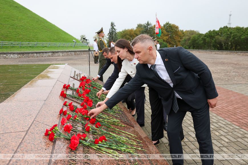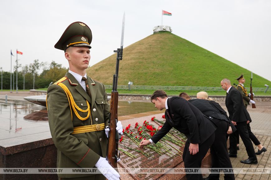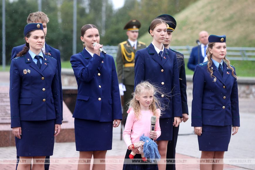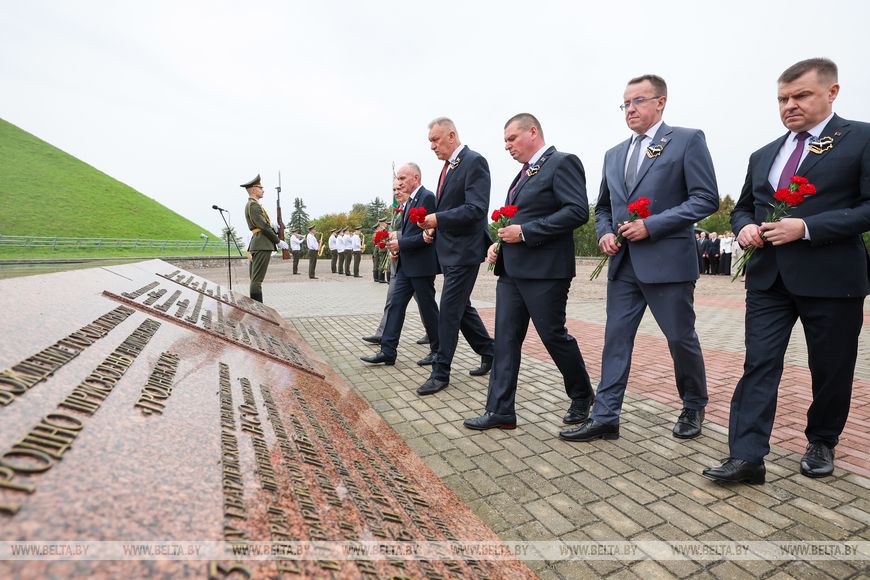 Участники мероприятия, прокурорские работники и их семьи из разных регионов страны, собрались у Кургана Славы, знаковом месте для каждого жителя Гродно. 17 сентября 1968 года был заложен и сооружен этот мемориальный комплекс для увековечения памяти советских воинов, партизан и подпольщиков, погибших в годы Великой Отечественной войны, а также борцов, павших за советскую власть в годы революции и Гражданской войны, за воссоединение Западной Беларуси с БССР. Во время возведения монумента и в последующие годы сюда привозили землю из всех районов области, с братских могил воинов и партизан, мест захоронения Героев Советского Союза. Участники митинга возложили цветы к вечному огню и почтили память героев минутой молчания.