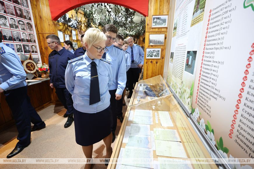 27 июля, Минск /Корр. БЕЛТА/. Прокурорские работники Минска и Минской области посетили историко-краеведческий музей "Зеркало времени" Березинской гимназии в ходе поездки на место захоронения мирных граждан в лесном массиве возле агрогородка Богушевичи, передает корреспондент БЕЛТА.