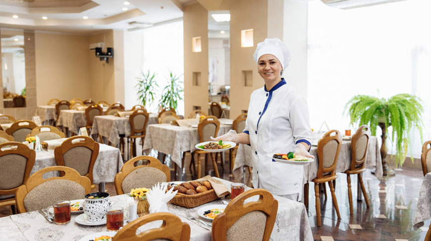 Для клиентов организовано пятиразовое питание с элементами "шведского стола" и системой предварительного заказа блюд. Среди них обязательно найдете наши, национальные, и фирменные блюда "от шефа". Нужно сказать, что местные повара готовят вкусно, сытно и по-домашнему. Ежедневно пекарь-кондитер выпекает свежий хлеб и булочки, готовит десерты.