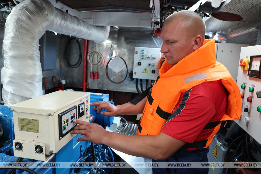 Моторист Олег Матюшкин, уже три года работающий в филиале "Витебскводтранс", отвечает за железное сердце теплохода. "Я здесь смотрю за машинным отделением, чтобы оно было в порядке. Все новое, работает как часы. Конечно, как и в любой машине, механизмы требуют ухода. Раньше я ходил в рейсы на маленьких путейцах, и разница в условиях пребывания на новом судне огромная. Сейчас нам очень комфортно, можно жить здесь несколько дней и ни в чем не нуждаться", - признается он.