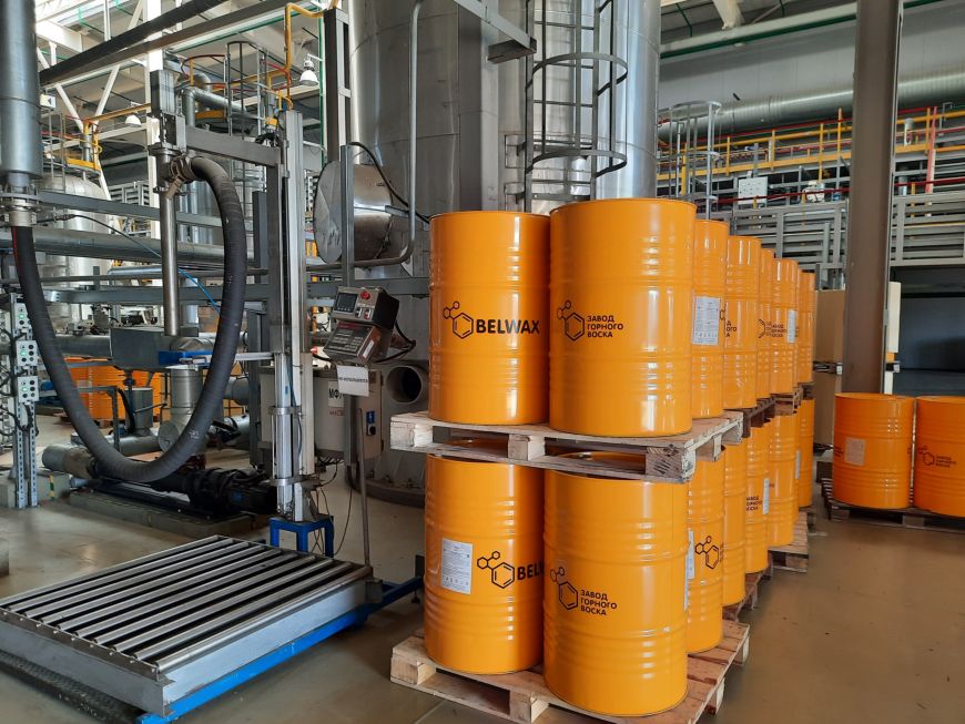 Сегодня ОАО "Завод горного воска" выпускает 63 наименования продукции. Как рассказали на предприятии, во втором полугодии 2025 года планируется запустить в производство новые продукты. В их числе антислеживающая добавка для карбамида, смазка канатная КС-Унм, универсальный антислеживатель для минеральных удобрений Belwax FA, модельный состав Belwax-3Н и некоторые другие.