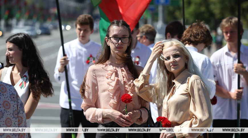 3 июля, Минск /Корр. БЕЛТА/. Память о событиях Великой Отечественной войны живет в наших сердцах. Об этом заявила школьный учитель, член Молодежного совета при Палате представителей Национального собрания Анастасия Шишкина после торжественной церемонии возложения цветов к монументу Победы, посвященной Дню Независимости Республики Беларусь, передает корреспондент БЕЛТА.