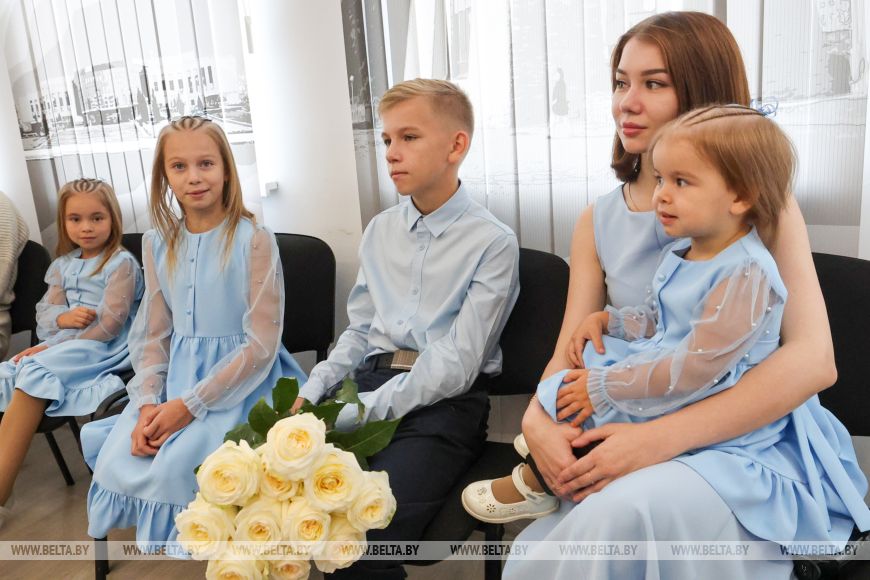 Даниил в этом году будет учиться в девятом классе, а потом собирается поступать в Брестский филиал Белорусской академии связи, дальше - служба связистом в погранвойсках: у парня уже составлен четкий план на будущее. "Я очень хотела дочку, возможно, поэтому мы с мужем в свое время решились на такое количество детей. Самая младшая София очень бойкая, руководит мальчишками. Она начала ходить в детский сад, довольно хорошо адаптируется, легко контактирует с воспитателями, детишками. Наверное, она привыкла к общению с братьями, поэтому ей проще социализироваться", - рассказала Анастасия.Представители администраций Первомайского и Железнодорожного районов Витебска вручили витебчанкам ордена Матери, которых они были удостоены в этом году.