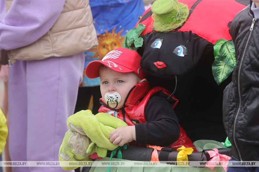 В многообразии ярких колясок заметна семья Антоновых, которая пришла на парад в национальных костюмах и с оформленным в такой же тематике средством передвижения для девятимесячной Алисы. "Идея принадлежит нашей бабушке. Всей семьей создавали. А вообще, очень приятно участвовать в таких мероприятиях, которые объединяют людей, позволяют проявлять свои творческие возможности и воспитывать в наших детях традиционные семейные ценности, транслировать их", - поделилась Мария Антонова. Она добавила: "Наш пятилетний сын Лев растет очень патриотичным. Чаще всего рисует белорусские флаги, все белорусское ему нравится. Вот мы и решили пронести эту идею в своем творении. Показать вместе с тем миролюбивость, что характерно для всех белорусов".