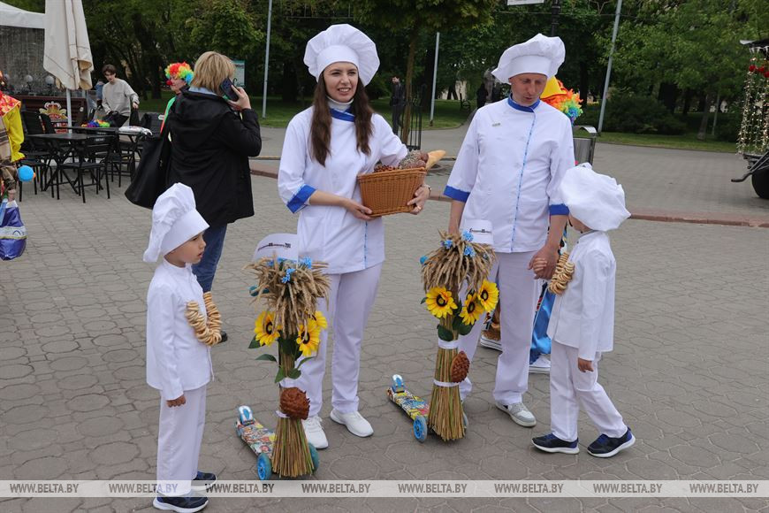 Виктория и Денис Манцевичи вместе с детьми Максимом и Ромой выбиваются даже из такого красочного многообразия самодельных шедевров. "Дети взрослые, поэтому коляски для нас уже неактуальны. И мы решили обратиться к тем транспортным средствам, которые у детской части семьи в особом почете - к самокатам. Мы представляем предприятие "Гроднохлебпром", поэтому решили оттолкнуться от этой темы. Мы все в роли поваров и поварят, со своей свежей продукцией, которую даже можно попробовать", - поделилась семья.