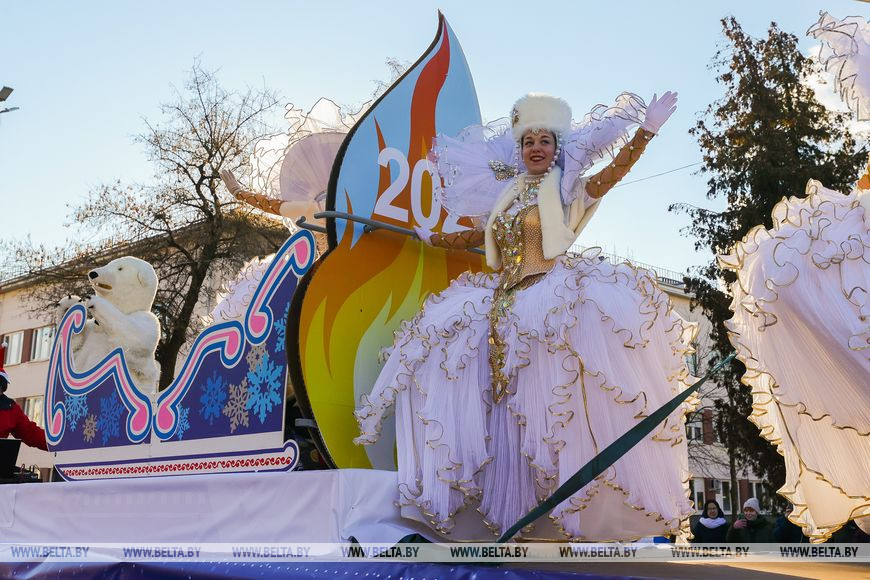Одним из самых ярких моментов фестиваля стал рождественский парад. Понаблюдать за ним, несмотря на студеную погоду, собрались сотни человек. Красочное шествие прошло по ул.Ленина. Во главе этой праздничной колонны ехали сани, запряженные статным жеребцом ганноверской породы. Зрители увидели перфомансы в исполнении музыкальных, танцевальных и театральных коллективов. Около 30 предприятий оригинально украсили свои платформы, на которых были разыграны небольшие представления. Завершали шествие Деды Морозы и Снегурочки. Их было 2022.-0-