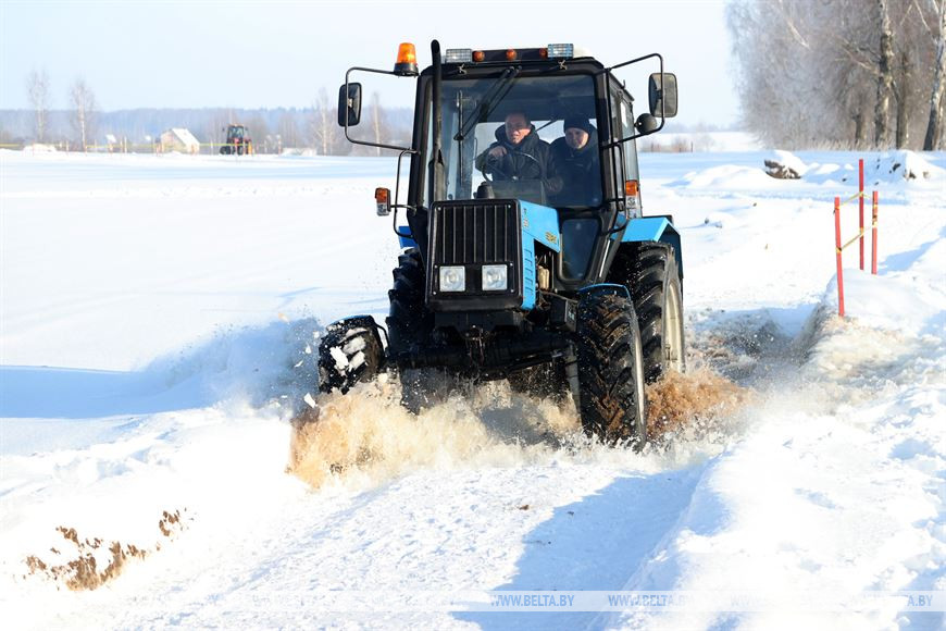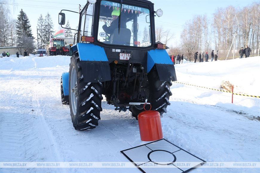 Фигурное вождение тракторов, виртуозное преодоление преград и огневой рубеж: необычные соревнования по тракторному биатлону для студентов и всех желающих устроили на базе Белорусской государственной сельскохозяйственной академии. Во второй раз организатором зрелищных состязаний выступил факультет механизации сельского хозяйства. Несмотря на сильный мороз, а столбик термометра опустился почти до минус 20 градусов, желающих испытать себя и свои умения оказалось много. Корреспонденты БЕЛТА тоже отправились на учебный полигон, чтобы узнать, как ребята тракторами командуют.