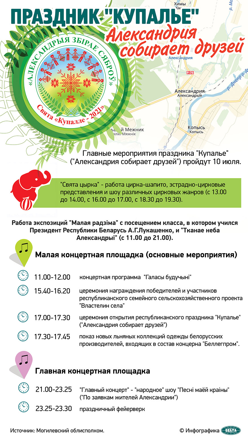 После благотворительной акции в Шклове стартует первый конкурсный день республиканского сельскохозяйственного проекта "Властелин села". Финальная часть соревнований и торжественное награждение победителей пройдут завтра во время праздника "Купалье" ("Александрия собирает друзей").-0-