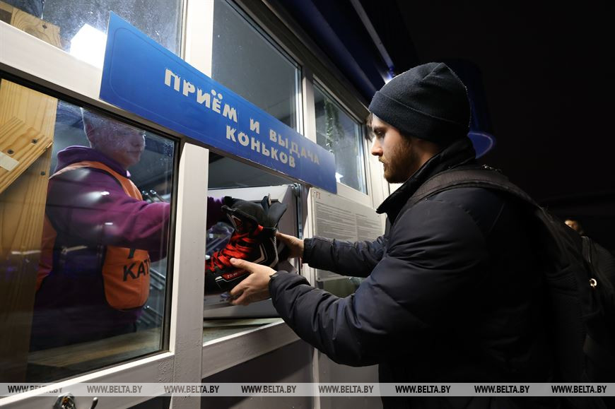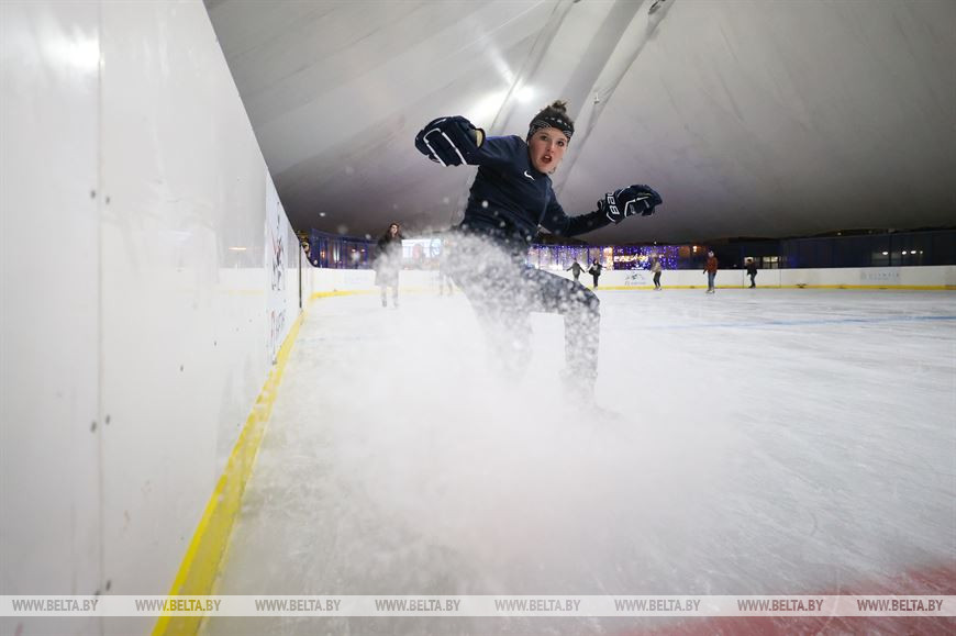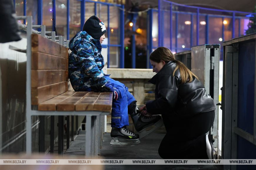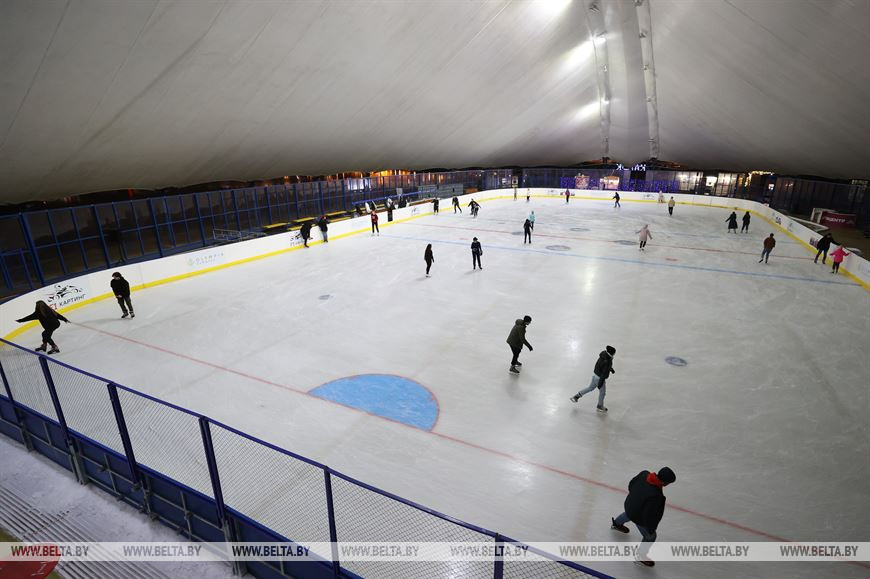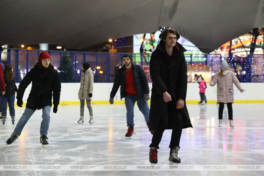 24 ноября, Минск /Корр. БЕЛТА/. 24 ноября мобильный каток у Дворца спорта в Минске начал принимать первых посетителей.-0-