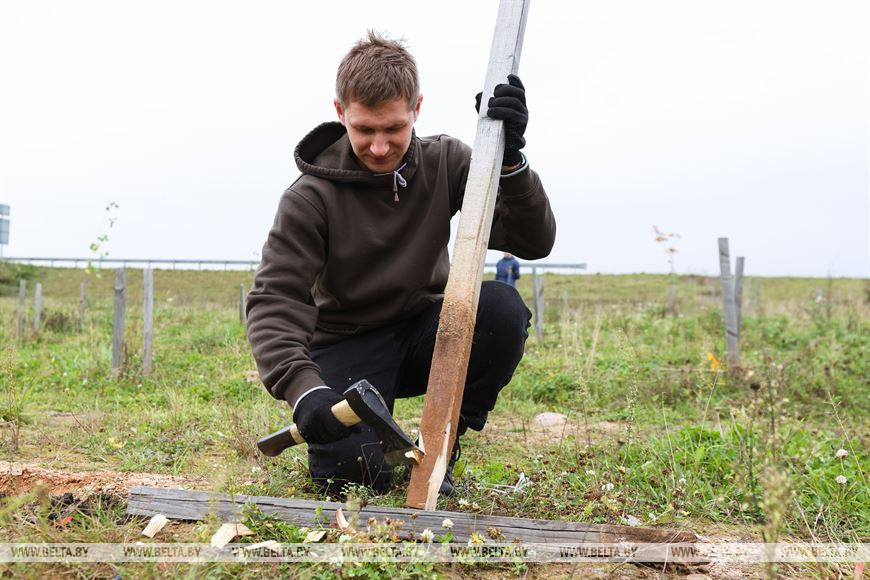 10 октября, Минск /Корр. БЕЛТА/. Центральный аппарат Минприроды во главе с заместителем министра природных ресурсов и охраны окружающей среды Республики Беларусь Александром Корбутом 10 октября благоустроил территорию на участке пересечения автодороги Р-58 "Минск-Калачи-Мядель" (Минская область) и М-14 (вторая кольцевая вокруг г. Минска). Сотрудниками министерства и Минским областным комитетом природных ресурсов и охраны окружающей среды высажено 200 деревьев и кустарников.