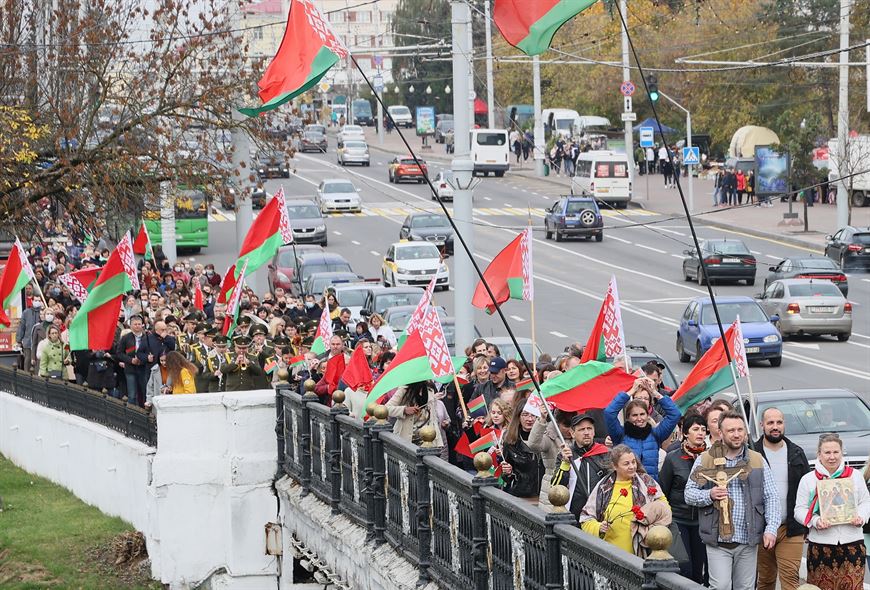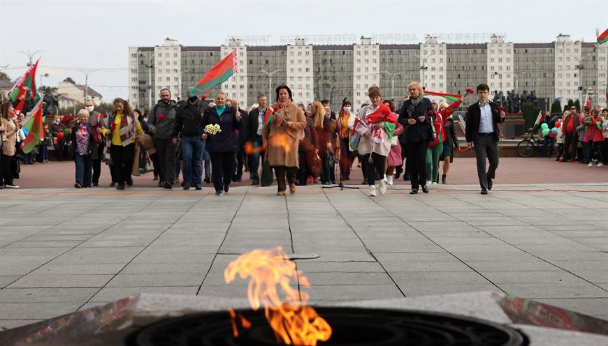 10 октября, Витебск /Корр. БЕЛТА/. В Витебске 10 октября состоялась акция "Сохраним мирную Беларусь!". Участники прошли по улицам областного центра от площади Ленина до площади Победы, возложили цветы к мемориальному комплексу в честь советских воинов-освободителей, партизан и подпольщиков Витебщины и приняли участие в посадке деревьев в парке Победителей.-0-