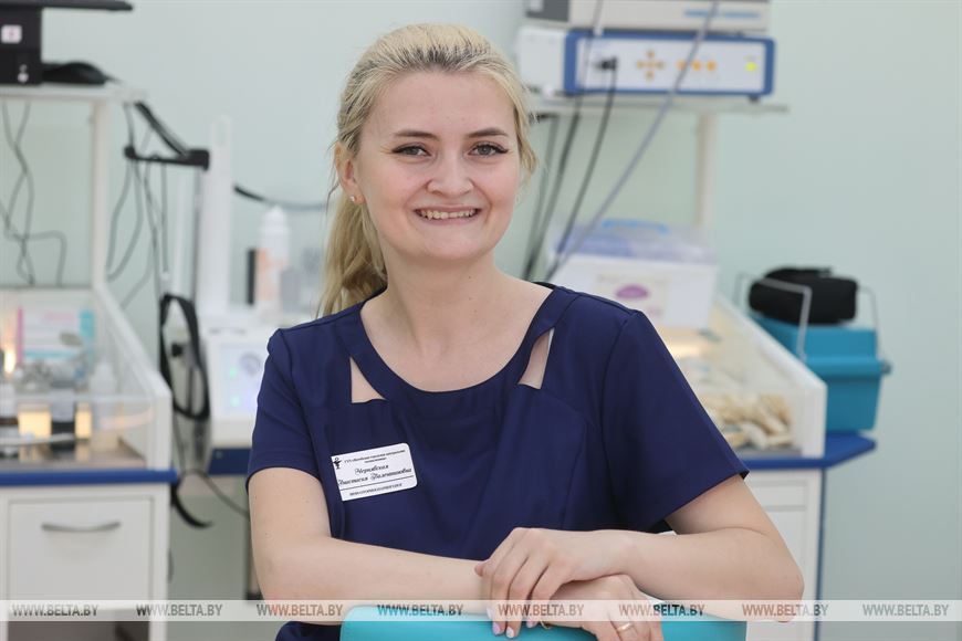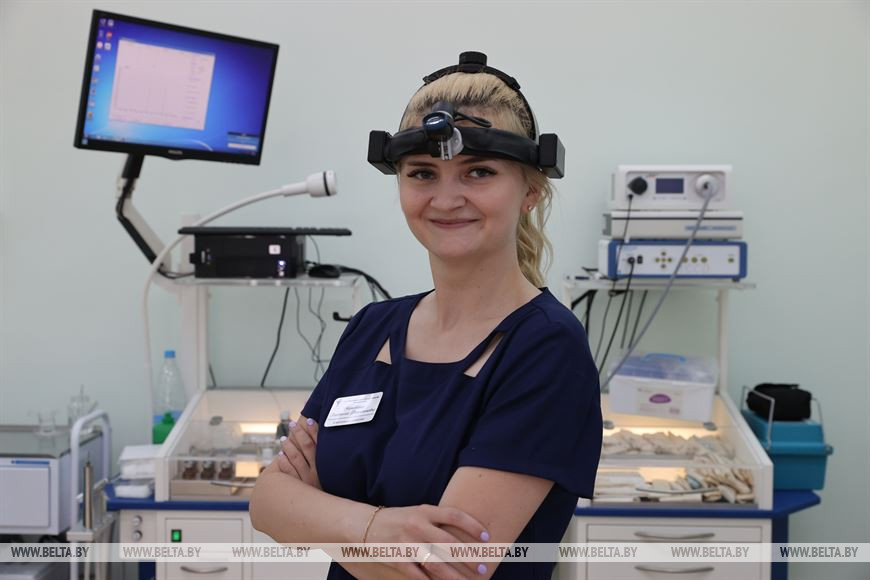 24 июня, Витебск /Корр. БЕЛТА/. Анастасия Чернявская - врач-отоларинголог Витебской городской центральной поликлиники. За высокий профессионализм, значительный личный вклад в укрепление и охрану здоровья решением Витебского горисполкома она удостоена звания "Витебчанин года - 2021" в номинации "Дебют".-0-