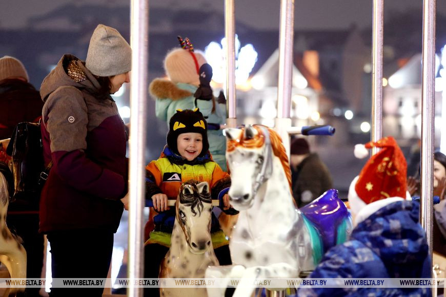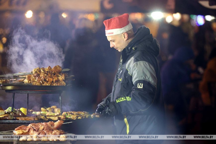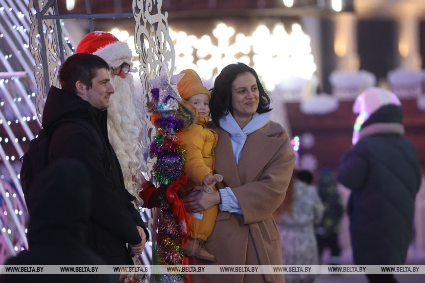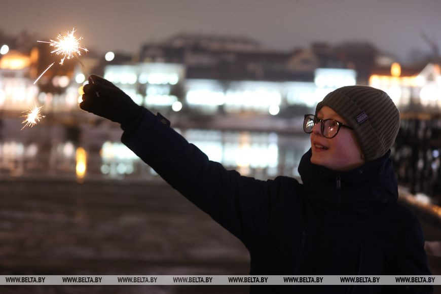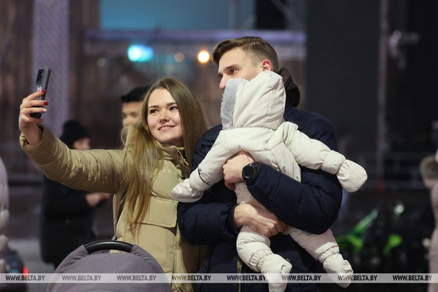 31 декабря, Минск /Корр. БЕЛТА/. До наступления нового 2023 года остаются считанные часы, минчане уже собираются на праздничных площадках. Атмосфера праздника царит на улицах Минска. В 00.30 на площадке у Дворца спорта начнется новогодняя программа с участием диджеев, популярных исполнителей и танцевальных коллективов.-0-