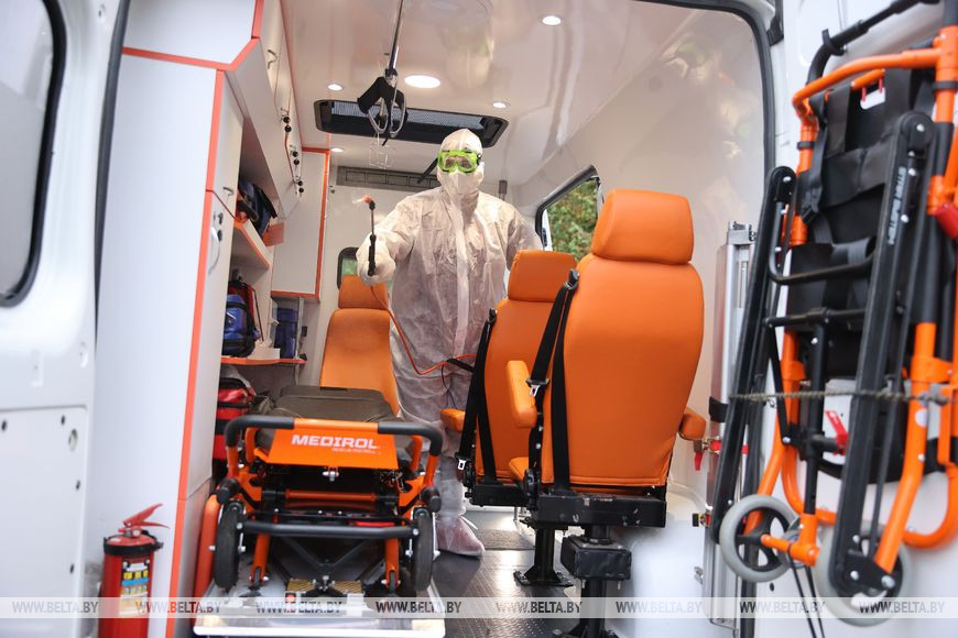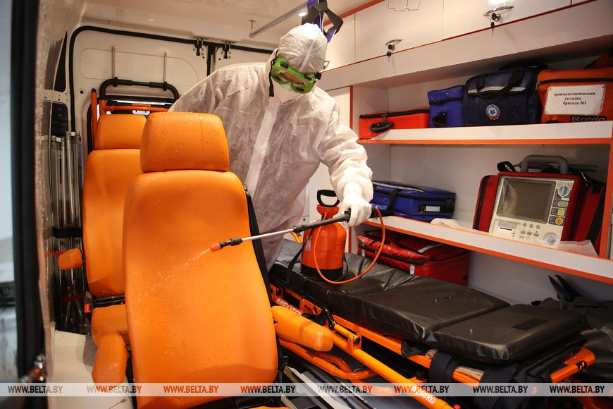 13 октября, Гродно /Корр. БЕЛТА/. После транспортировки каждого пациента вне зависимости от наличия у него признаков инфекционного заболевания медики Гродненской областной станции скорой медицинской помощи проводят дезинфекцию салона автомобиля и воздуха антисептиком. После обработки автомобиля медики в специально оборудованном помещении обеззараживают и утилизируют костюмы.-0-