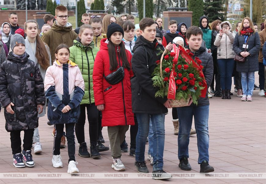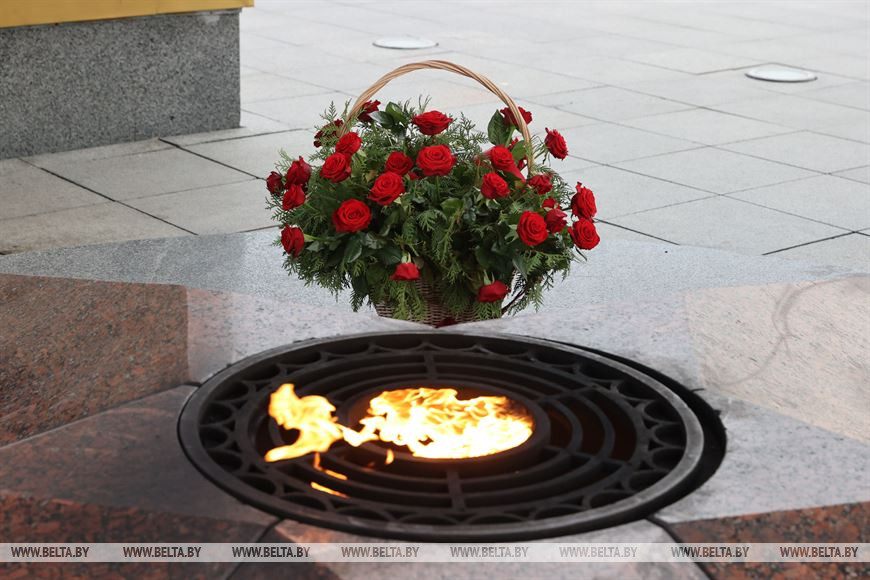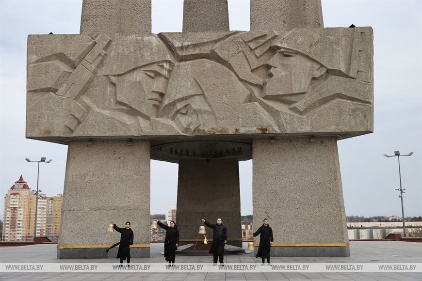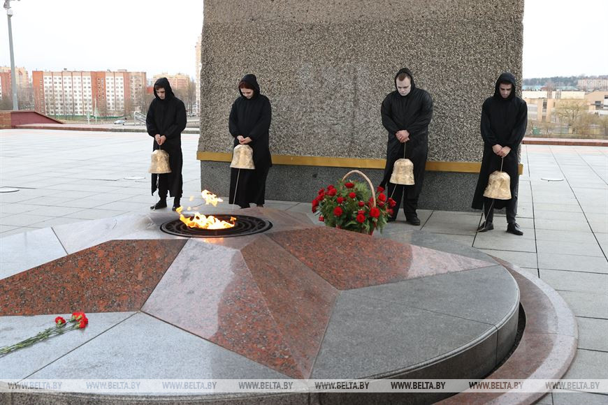 16 апреля, Витебск /Корр. БЕЛТА/. 6 апреля в 7.00 на площади Победы в Витебске состоялся митинг-реквием с возложением цветов к Вечному огню участниками марафона "Автопоезд памяти".