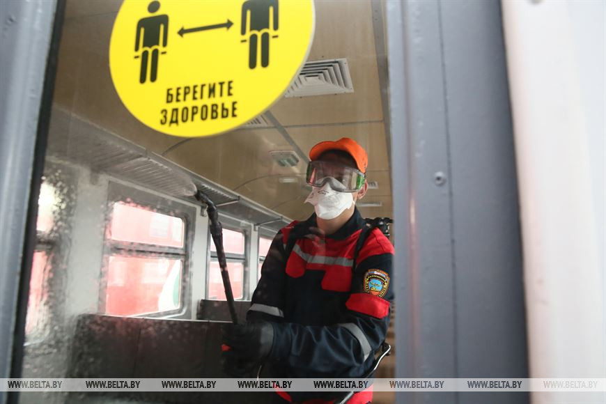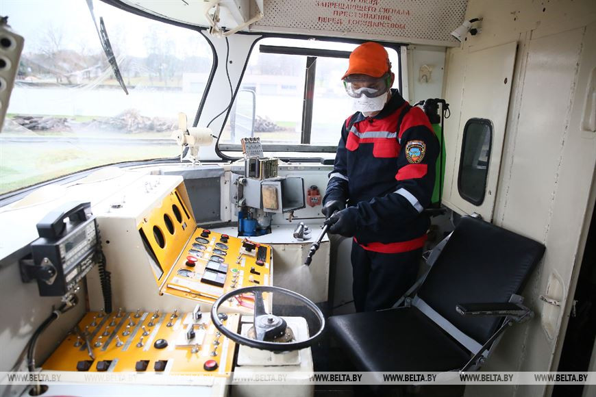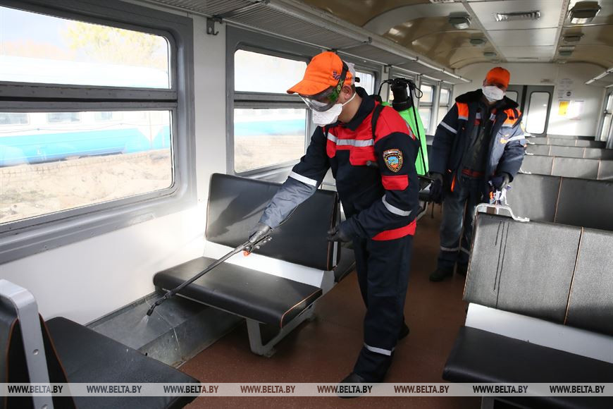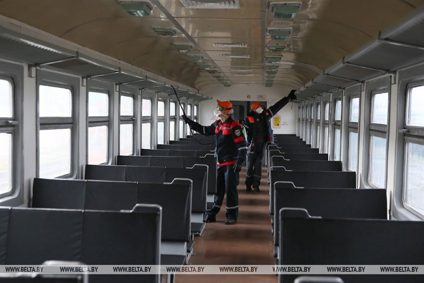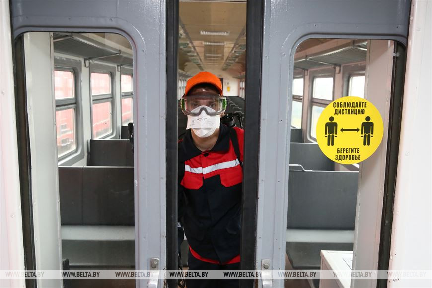27 ноября, Гродно /Корр. БЕЛТА/. Две ремонтные бригады Локомотивного оборотного депо в Гродно ежедневно дезинфицируют составы дизель-поездов, заходящих в депо на техобслуживание.-0-