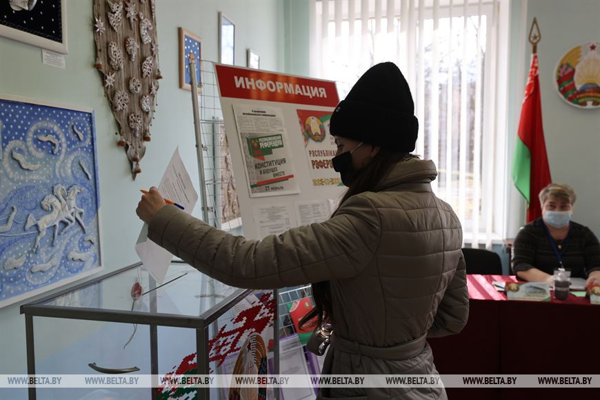 25 февраля, Жабинка /Корр. БЕЛТА/. На участке для голосования №7 в Жабинке Брестской области проходит досрочное голосование на референдуме по внесению изменений и дополнений в Конституцию Республики Беларусь.-0-