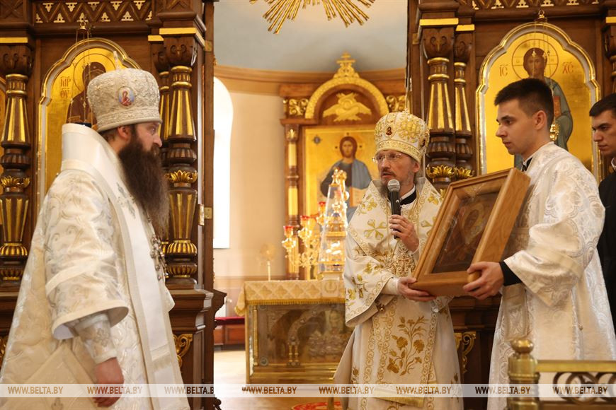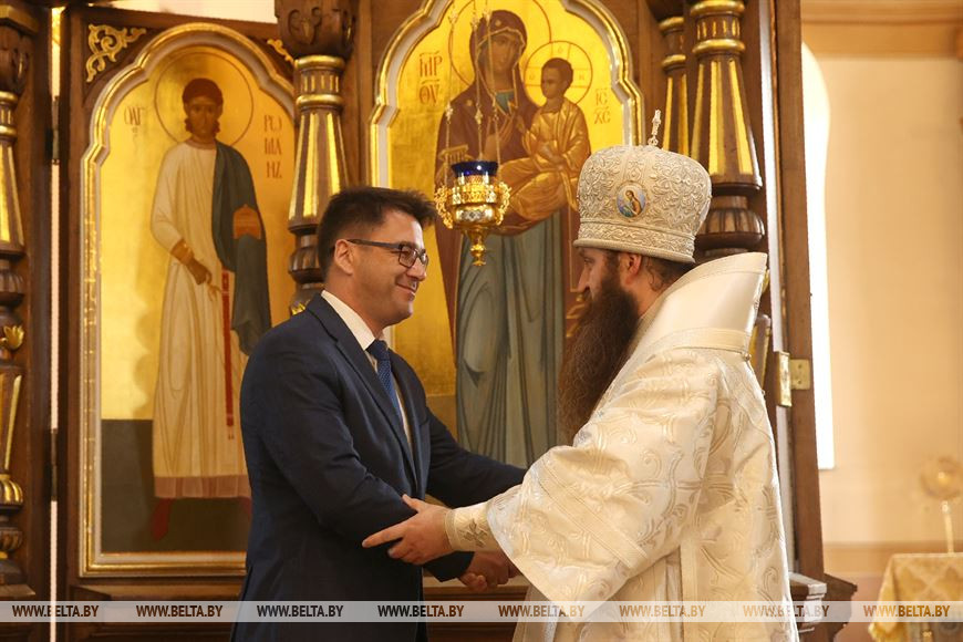 Заместитель председателя Гродненского облисполкома Виктор Пранюк, епископ Гродненский и Волковысский Антоний и Митрополит Минский и Заславский Вениамин, Патриарший Экзарх всея Беларуси