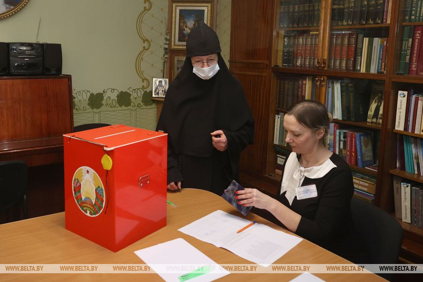 27 февраля, Минск /Корр. БЕЛТА/. Монахини и священники Гродненского Свято-Рождество-Богородичного монастыря приняли участие в голосовании по вопросу внесения изменений и дополнений в Конституцию Беларуси. В монастырь с переносной урной для голосования прибыли представители участковой избирательной комиссии №6.-0-
