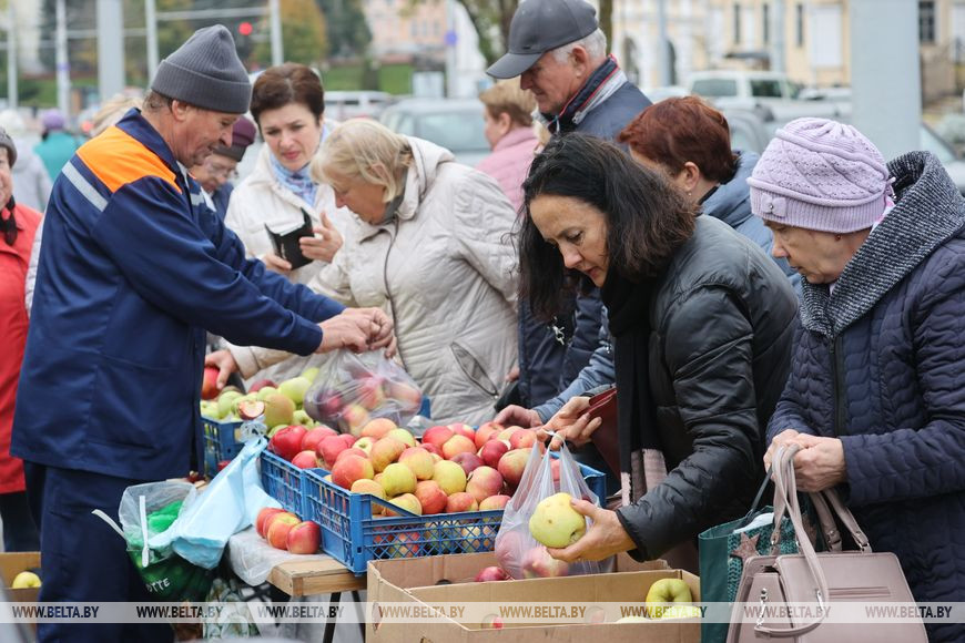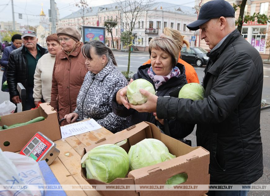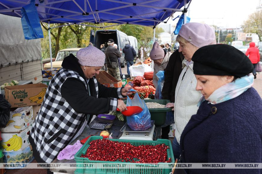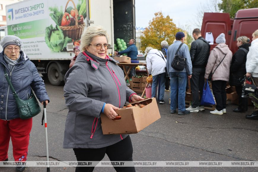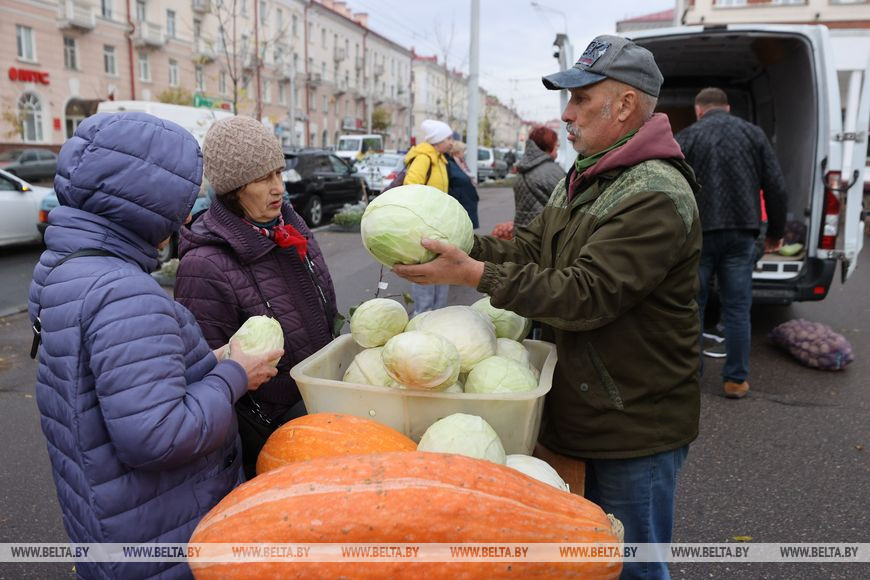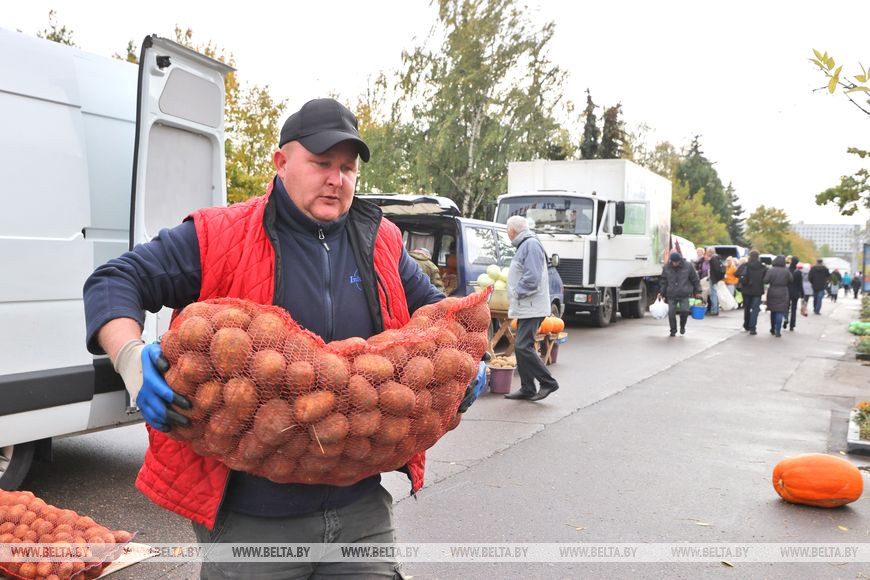 14 октября, Витебск /Корр. БЕЛТА/. В Витебске на улице Ленина проходит сезонная сельскохозяйственная ярмарка. В продаже широко представлены овощи и фрукты, ягоды, а также саженцы растений и цветы. Одного только картофеля можно насчитать около десятка сортов. Цены, как отметили витебчане, очень приемлемые. Тут же можно договориться и о доставке.-0-