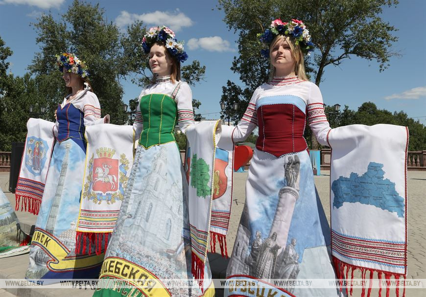 16 июля, Витебск /Корр. БЕЛТА/. IV Открытый областной праздник-конкурс театров мод "Модный дивертисмент" прошел в Витебске. Около 20 коллективов из Беларуси и России представляли свои лучшие образы в различных тематиках и цветовых гаммах.-0-