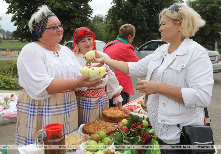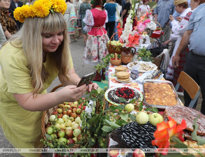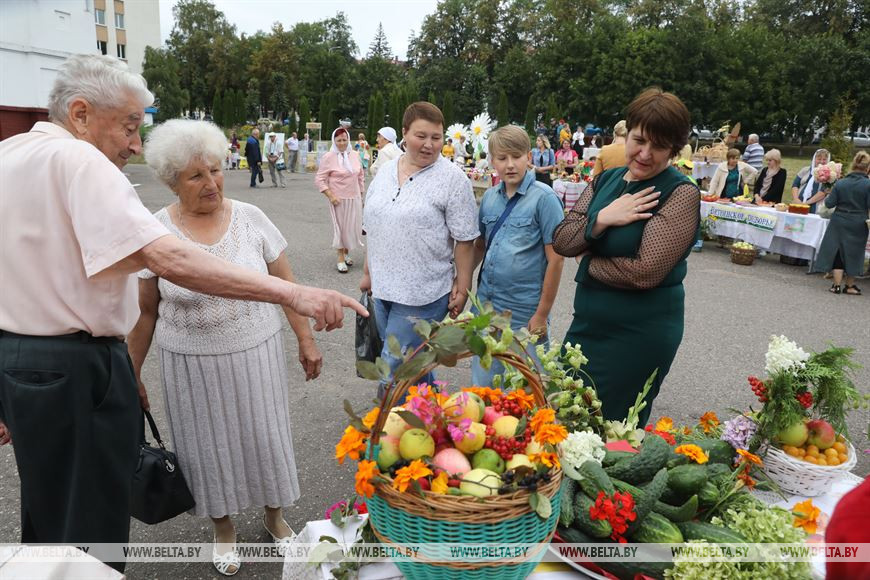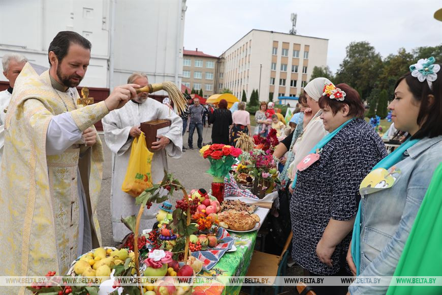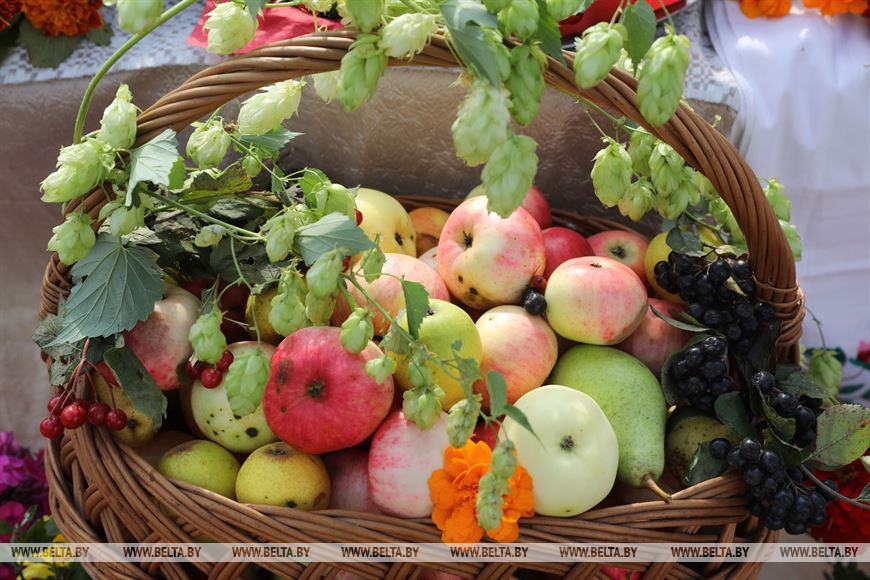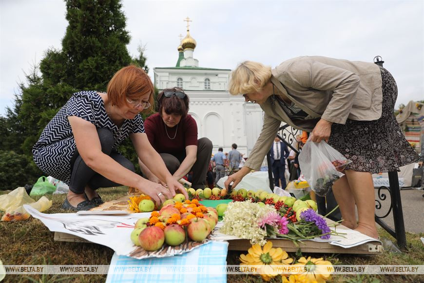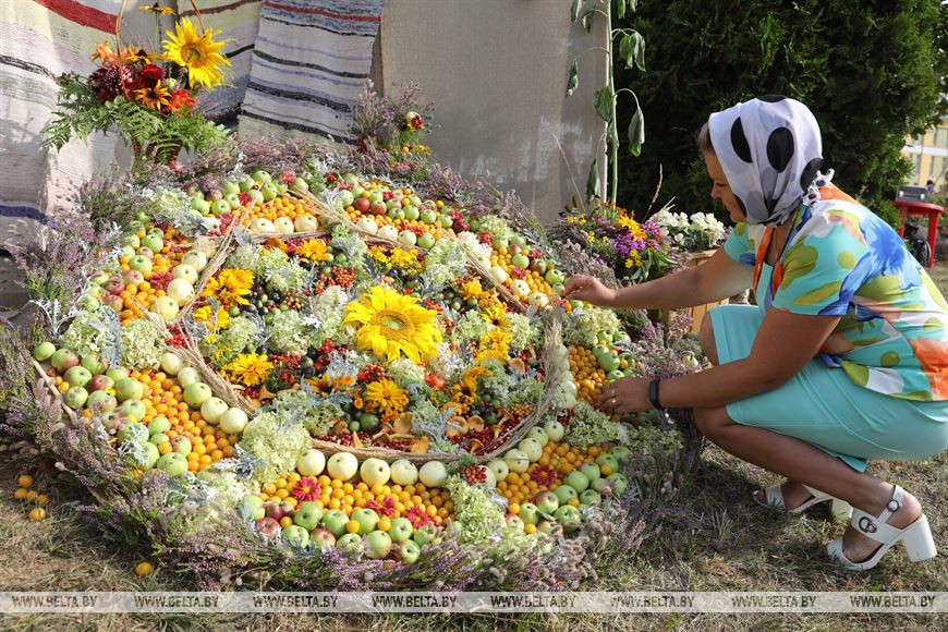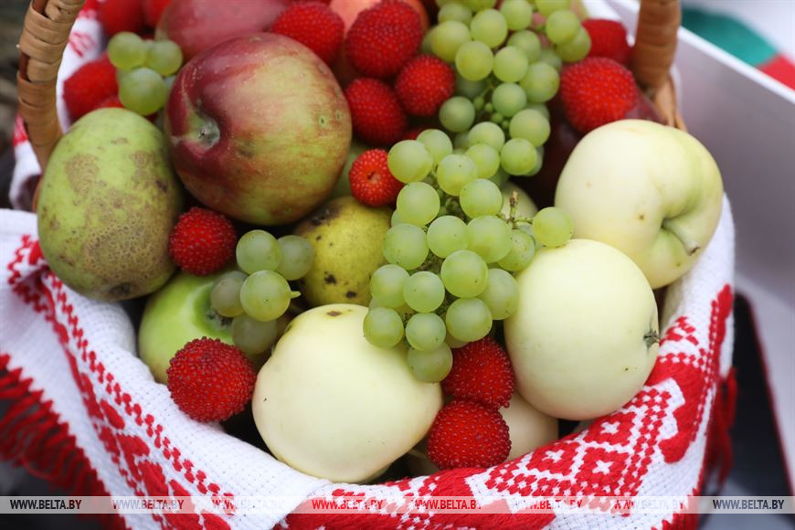 Здесь был проведен молебен с чином освящения плодов нового урожая. Предприятия, организации и учреждения различных сфер деятельности приняли участие в создании фруктовых композиций. Организатором мероприятия является Полоцкий райисполком.-0-