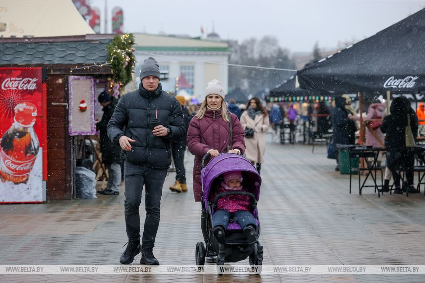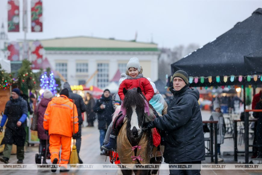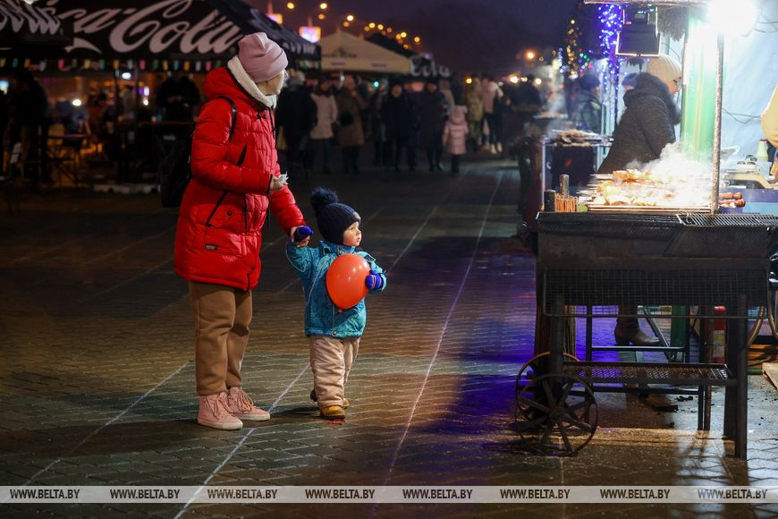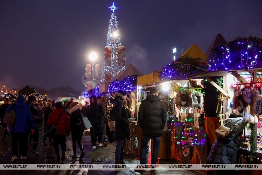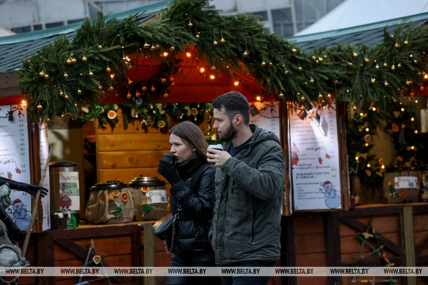 18 декабря, Минск /Корр. БЕЛТА/. С 17 декабря в Минске начала работать ярмарка "Калядны кiрмаш". На ней представлен широкий ассортимент продовольственных и непродовольственных товаров, большой выбор продукции общественного питания, в том числе кондитерских изделий и горячих рождественских напитков. Минчане и гости столицы могут приобрести новогодние сувениры и изделия ремесленников, а также покататься на аттракционах.-0-