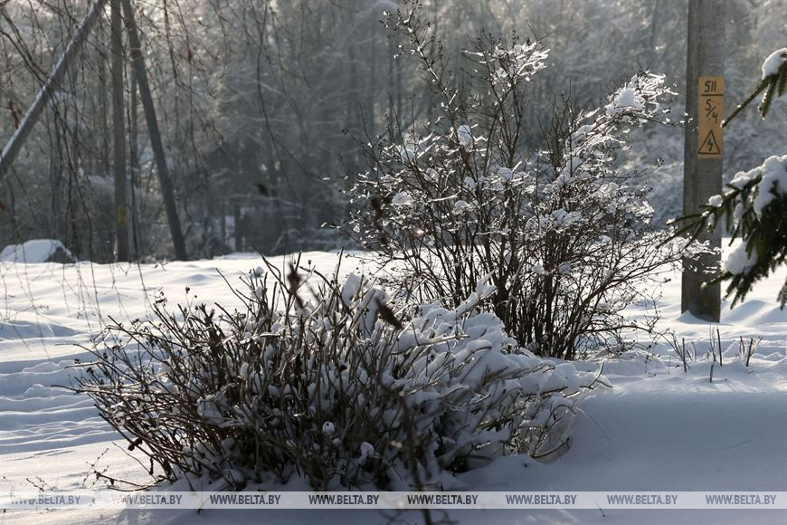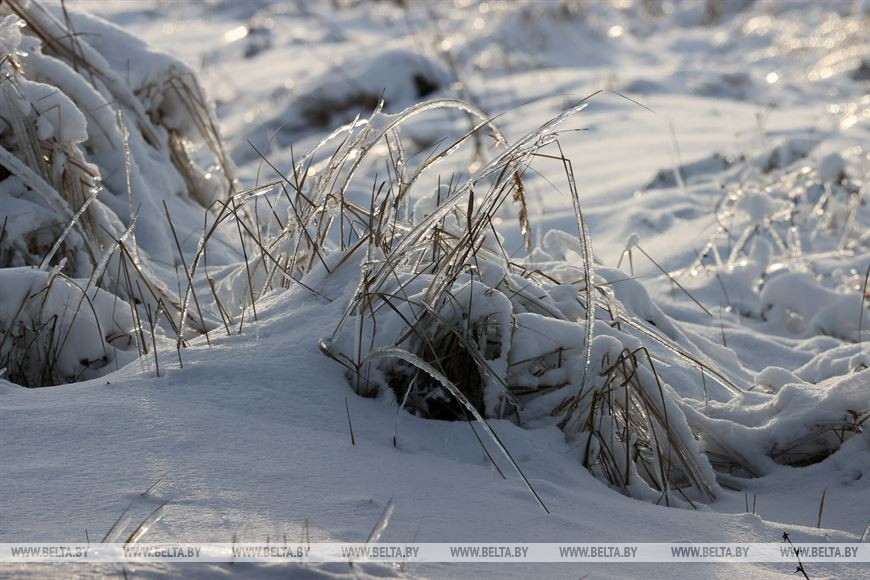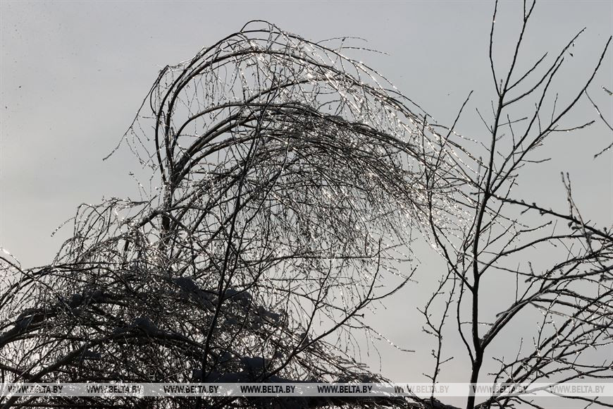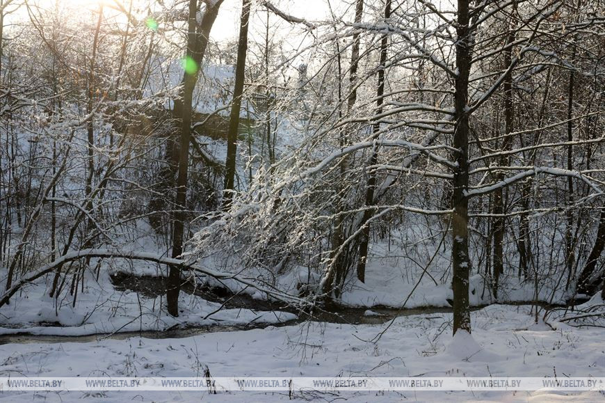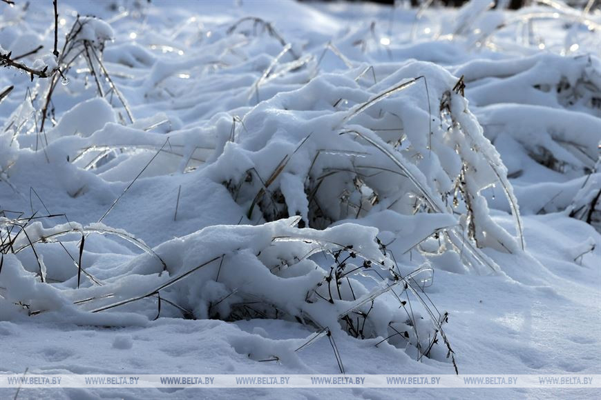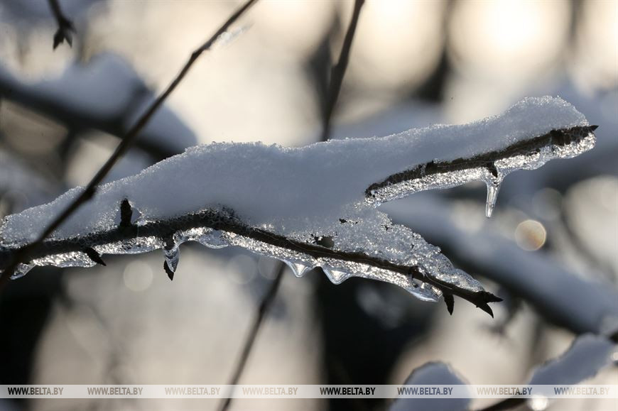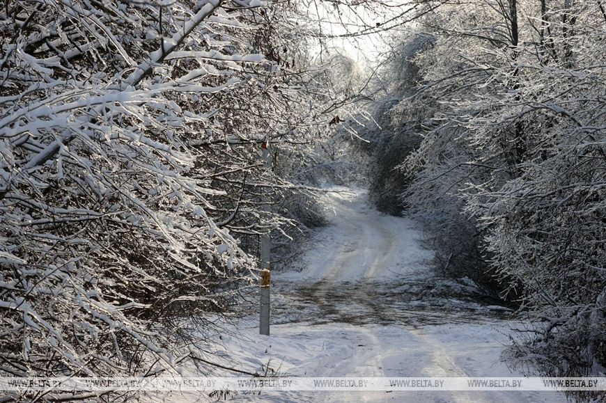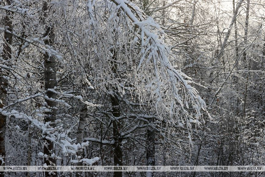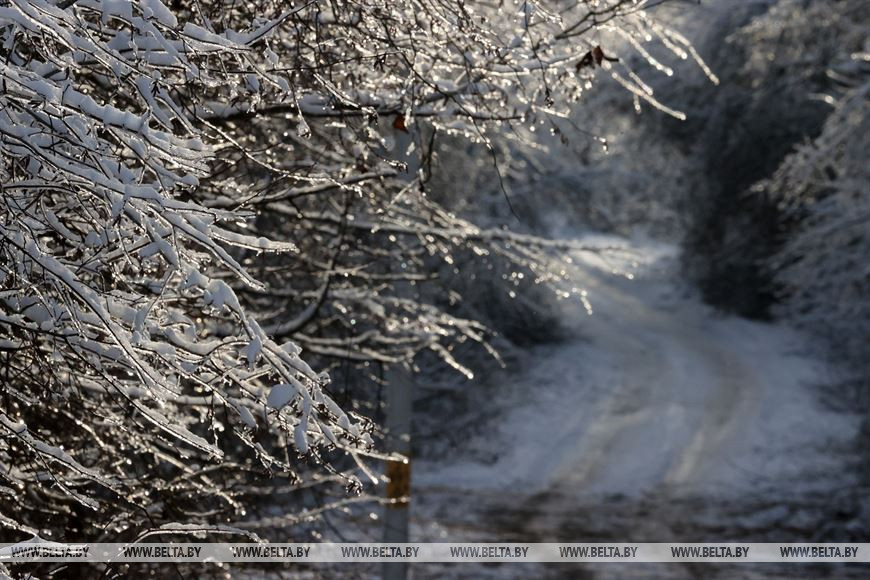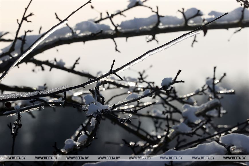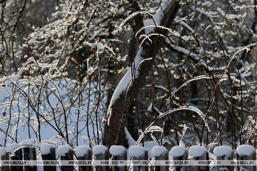 2 декабря, Костюковичи /Корр. БЕЛТА/. Календарная зима наступила всего день назад, однако погода радует белорусов снежным убранством уже третью неделю. В Костюковичком районе Могилевской области деревья не только нарядились в снежные шапки, но и покрылись слоем прозрачного льда.-0-
