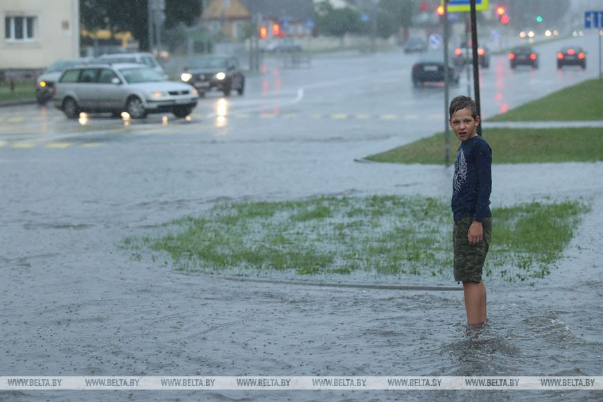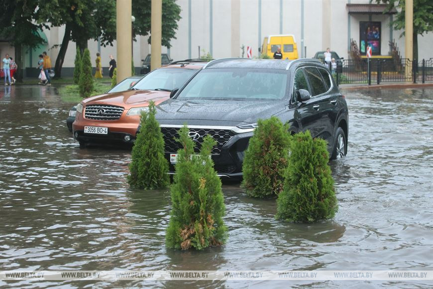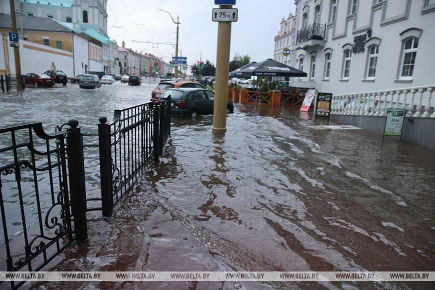 4 июля, Гродно /Корр. БЕЛТА/. Очередной ливень 4 июля затопил улицы Гродно.-0-