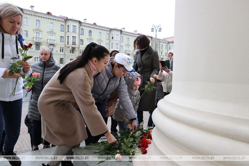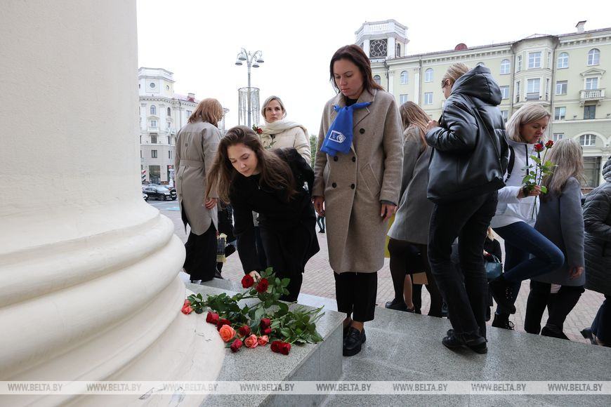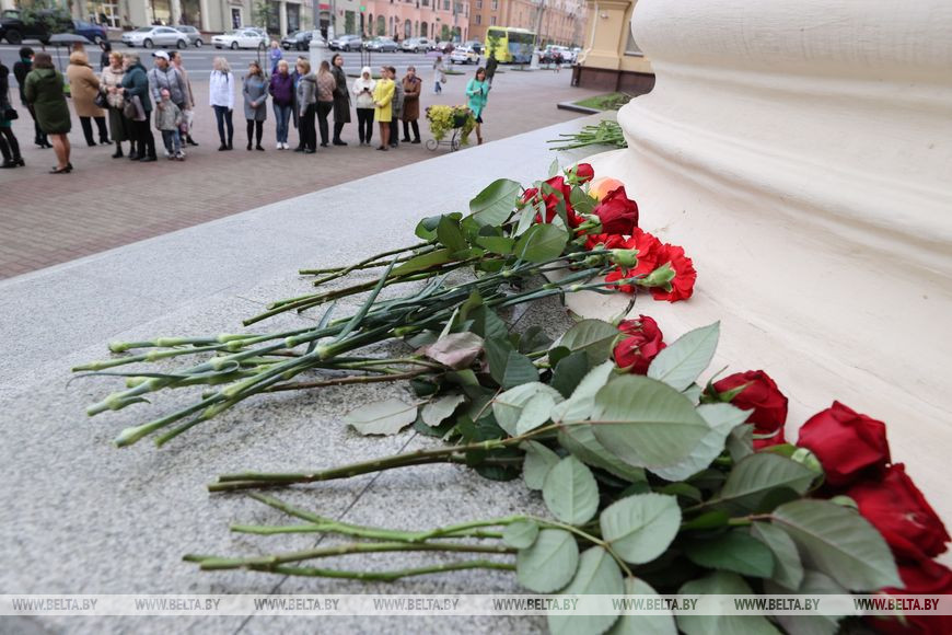 28 сентября, Минск /Корр. БЕЛТА/. Ровно год назад, 28 сентября, погиб сотрудник Комитета госбезопасности старший лейтенант Дмитрий Федосюк с позывным "Нирвана". В память о нем люди несут цветы к зданию КГБ в Минске.-0-