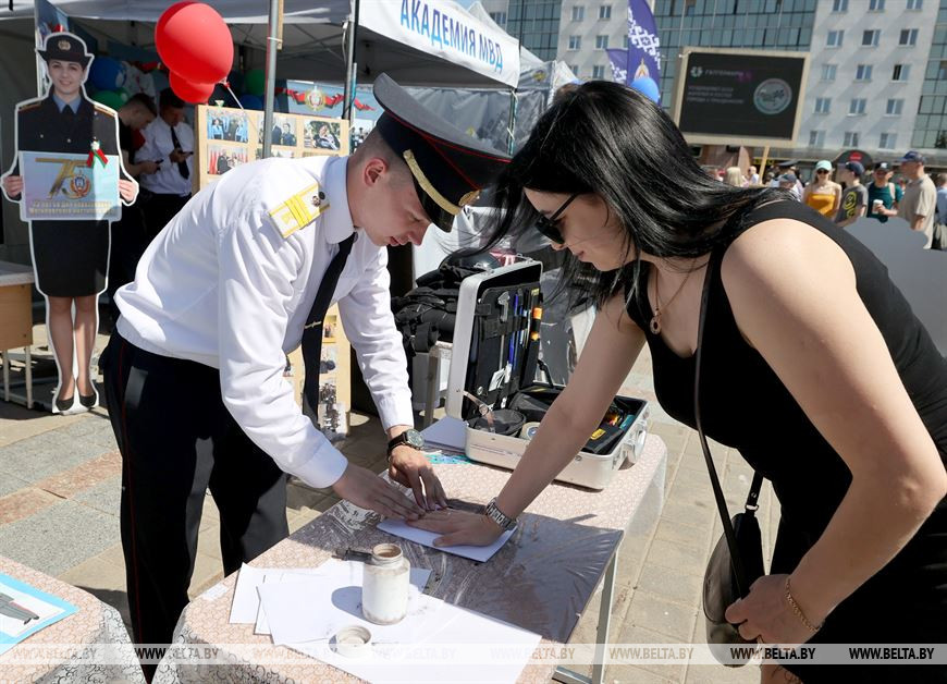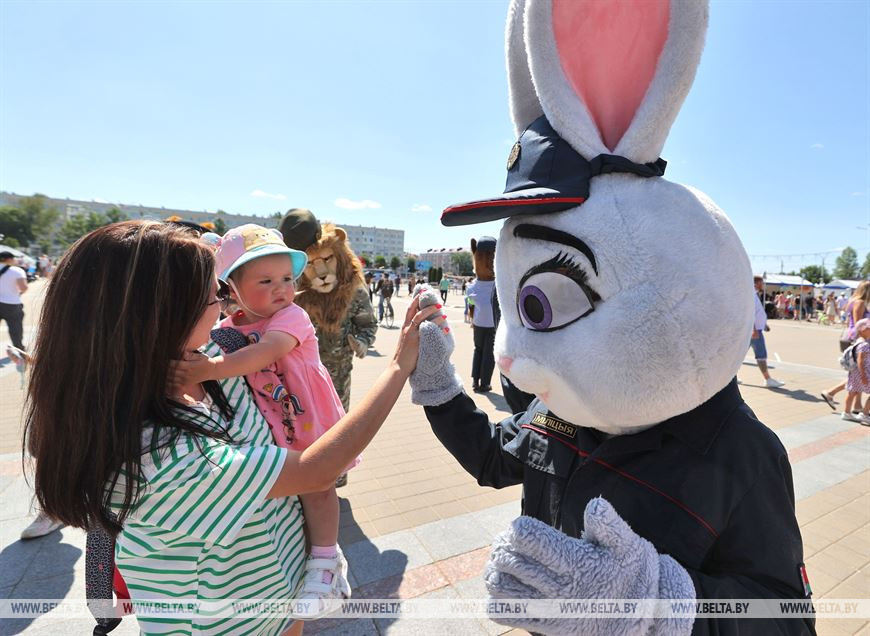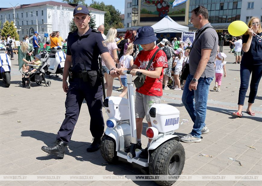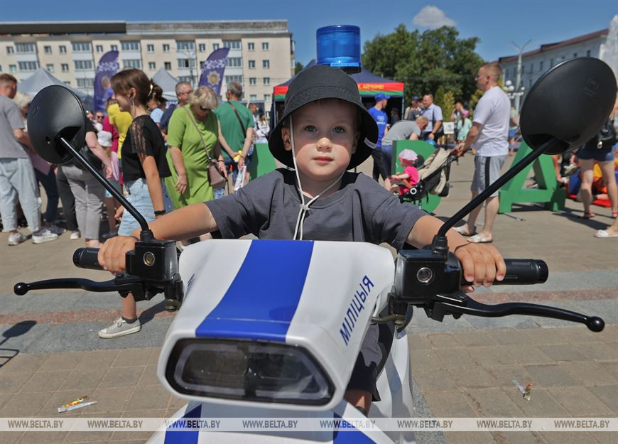16 июля, Витебск /Корр. БЕЛТА/. Масштабная акция Министерства внутренних дел "За безопасность вместе" прошла на площади Победы в Витебске во время фестиваля "Славянский базар". Посетители увидели стремительные задержания условных преступников сотрудниками спецподразделений, скоростное маневрирование от ГАИ, выступления кинологов и их подопечных, автопарад ретроавтомобилей и современной техники. Здесь же были организованы многочисленные яркие фотозоны.-0-