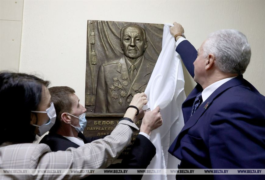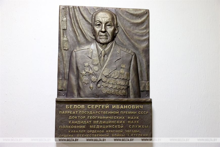 6 мая, Витебск /Корр. БЕЛТА/. В Витебском государственном медицинском университете сегодня торжественно открыли мемориальную доску лауреату Государственной премии СССР, доктору географических наук, кандидату медицинских наук, полковнику медицинской службы, кавалеру орденов Красной Звезды и ордена Отечественной войны I степени Сергею Белову.